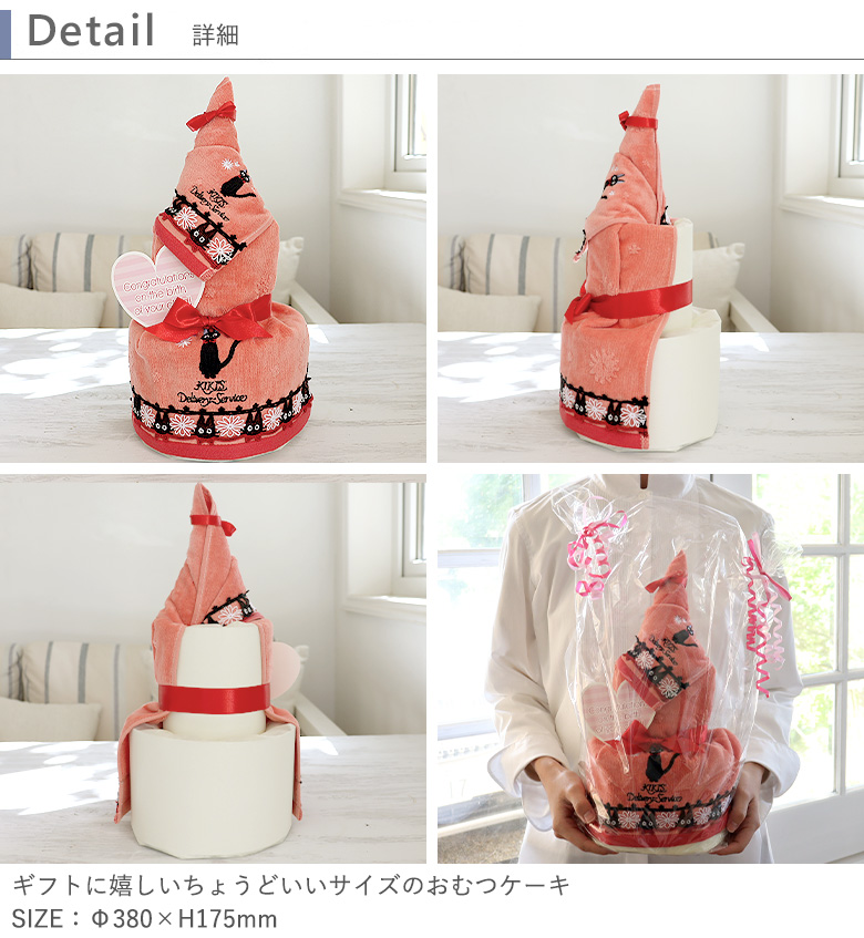 かわいい黒猫「ジジ」が出産のお祝いに♪ タオル2枚の実用的なおむつケーキ