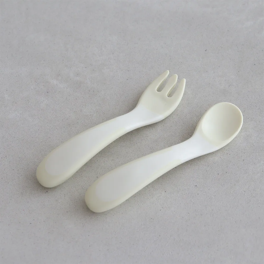 はじめて自分で持つのに、にぎりやすいカーブ形状のスプーンとフォーク。