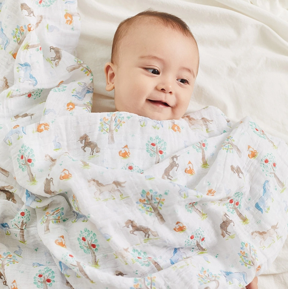 通気性のよい軽やかな肌ざわりはおくるみはもちろん、日よけや授乳ケープにも。