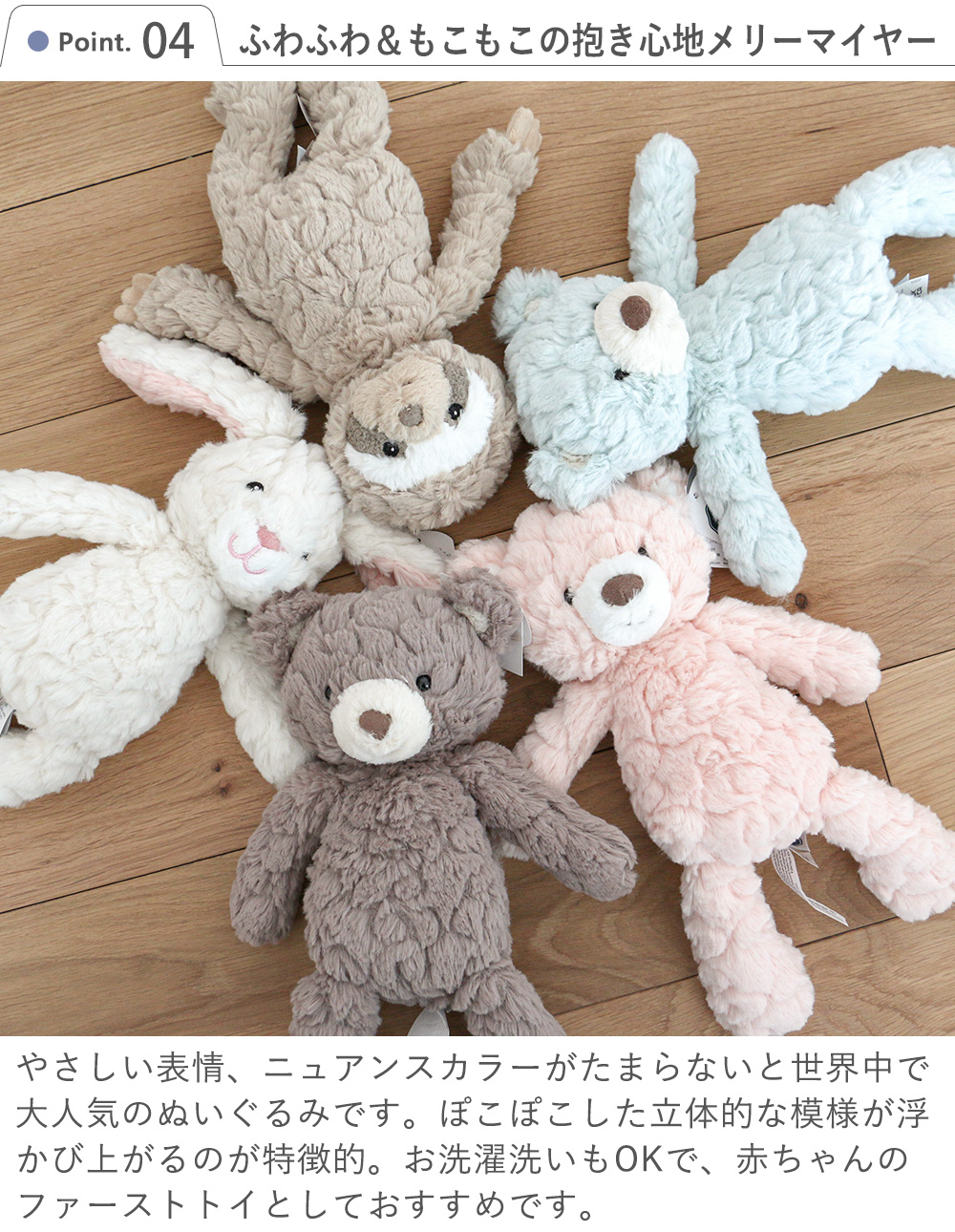 やさしい表情、ニュアンスカラーがたまらないと世界中で大人気のぬいぐるみです。