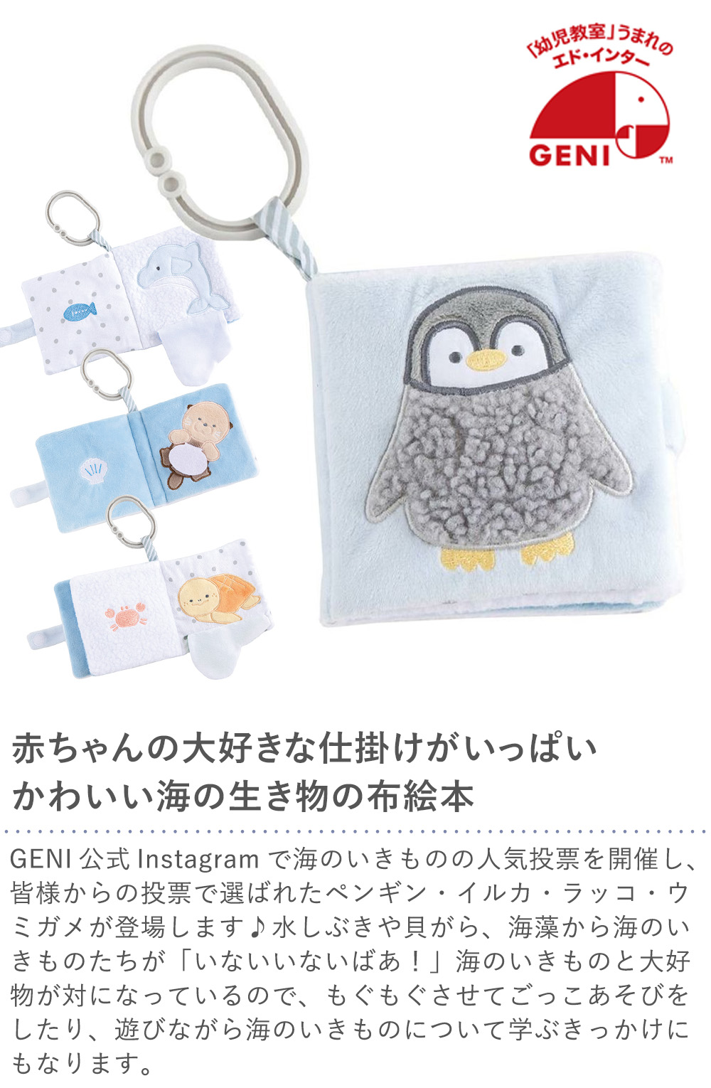 GENI公式Instagramで海のいきものの人気投票を開催し、皆様からの投票で選ばれたペンギン・イルカ・ラッコ・ウミガメが登場します♪