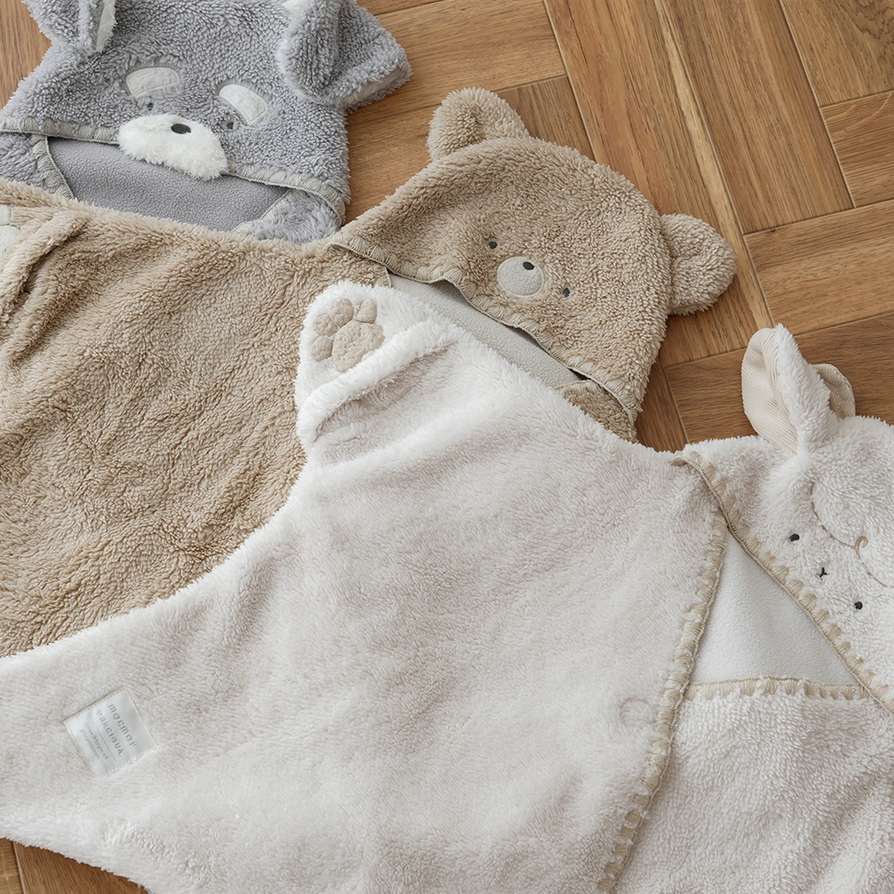 キュートなアニマル姿に大変身 癒しのもこもこおくるみ