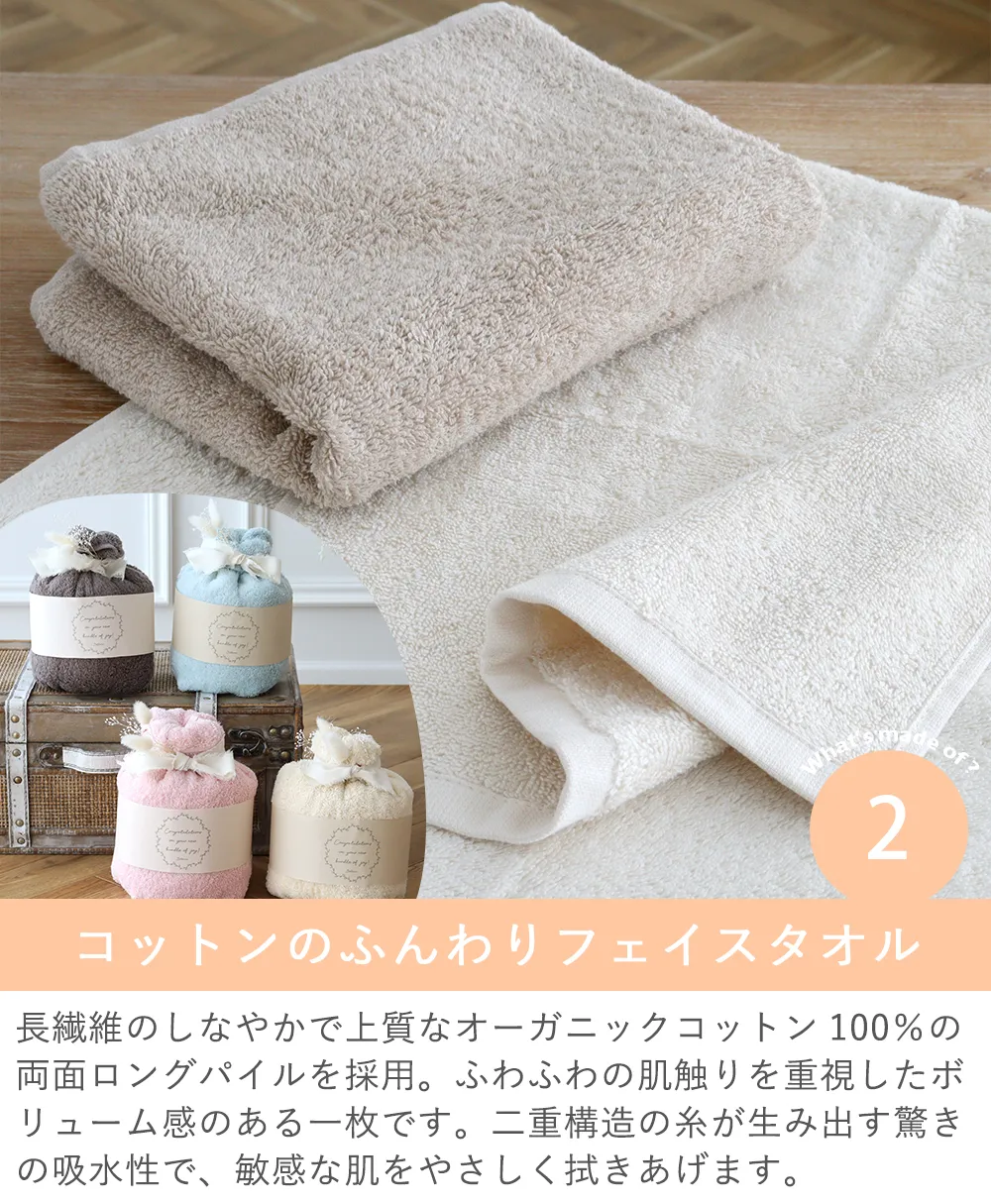 二重構造の糸が生み出す驚きの吸水性で、敏感な肌をやさしく拭きあげます。