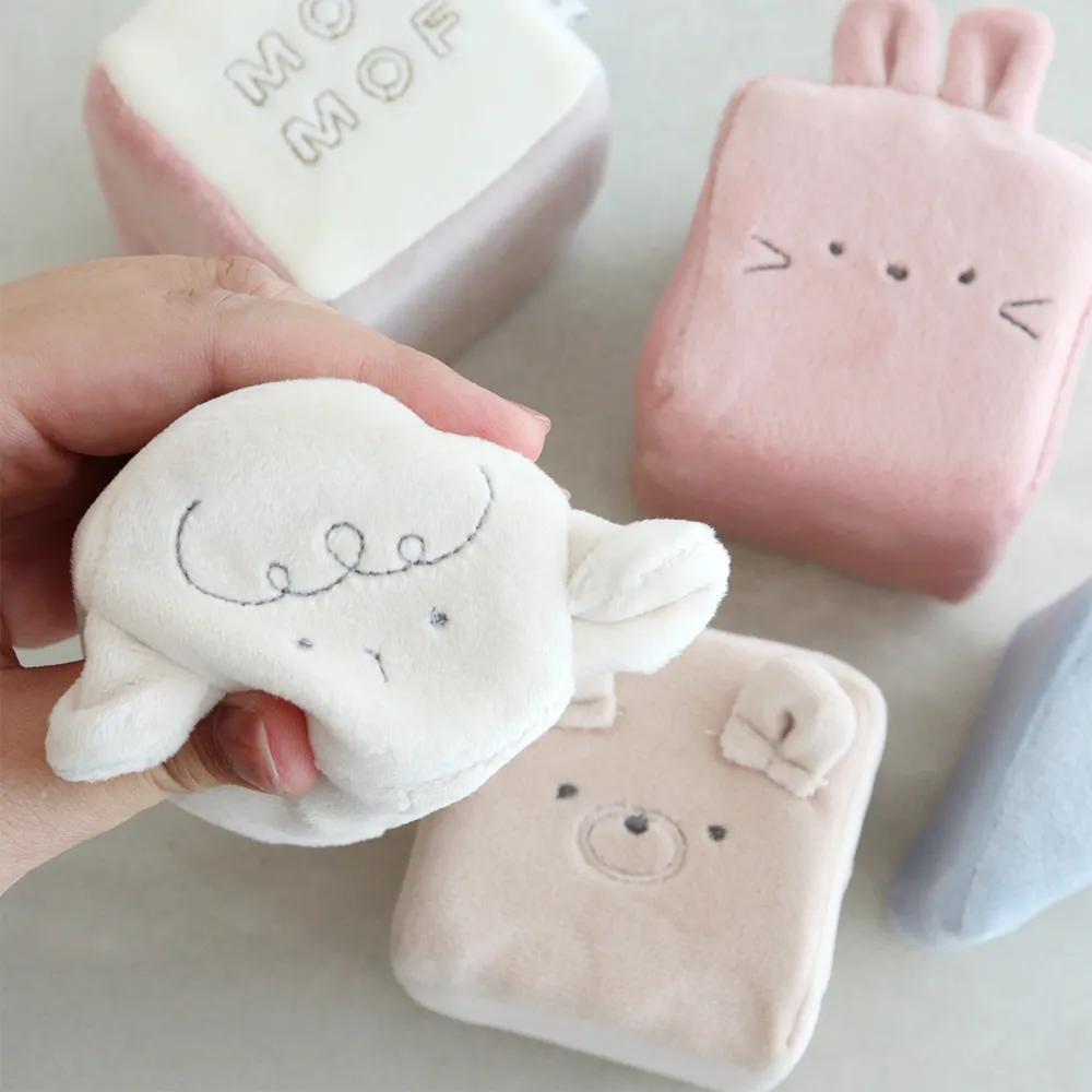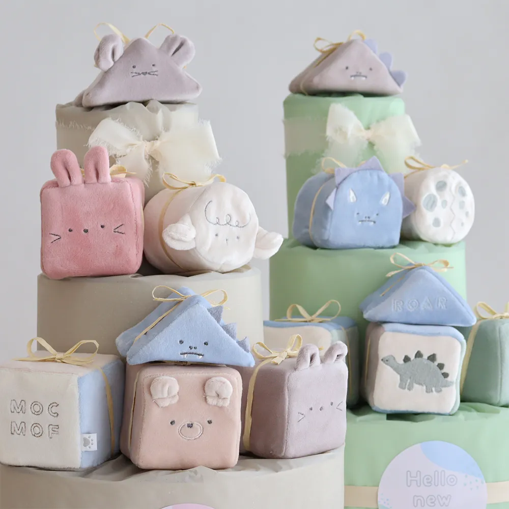 やわらかく肌触りの良い布製の積み木は赤ちゃんへのはじめてのおもちゃにぴったりです。