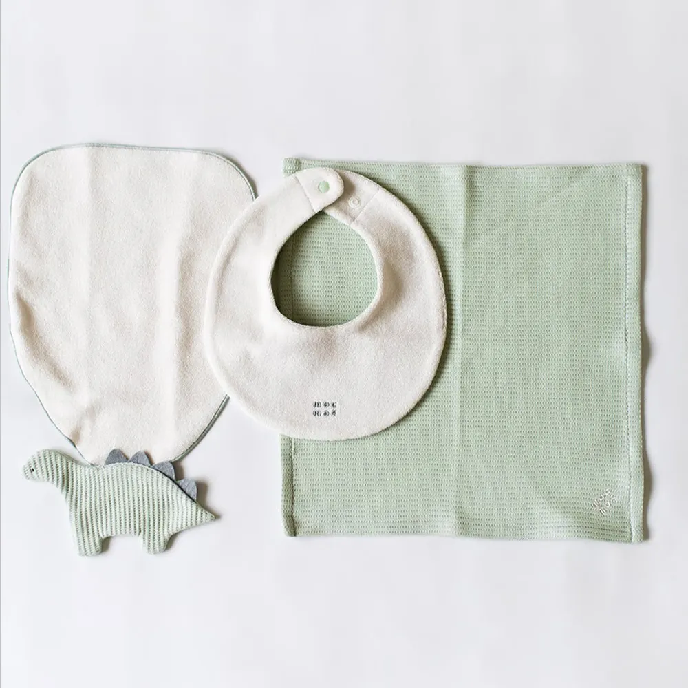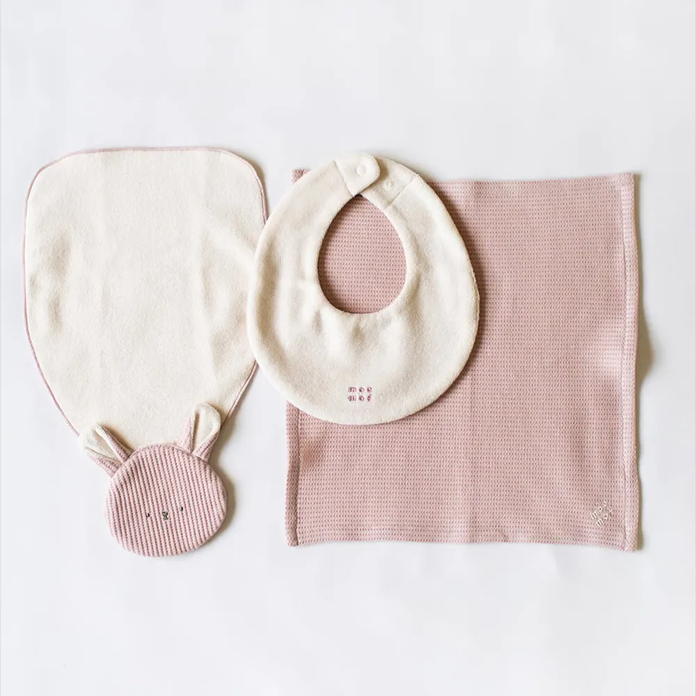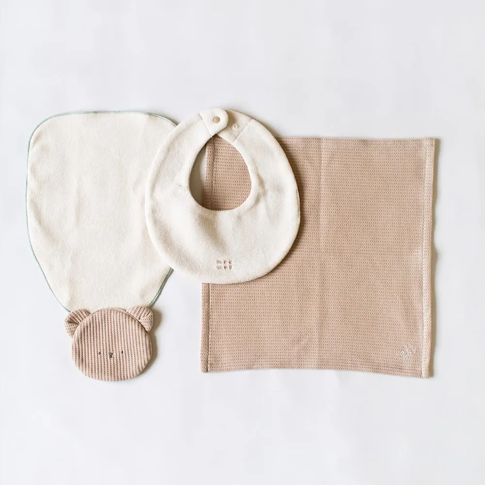 ふんわり優しい肌触りのパイル・ワッフル素材がつけ心地良く、吸水性も抜群のベビーアイテムたち。