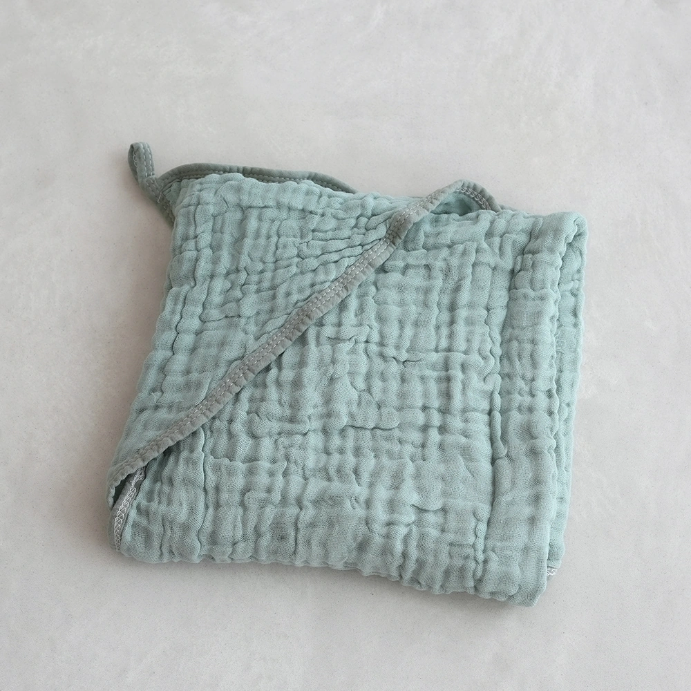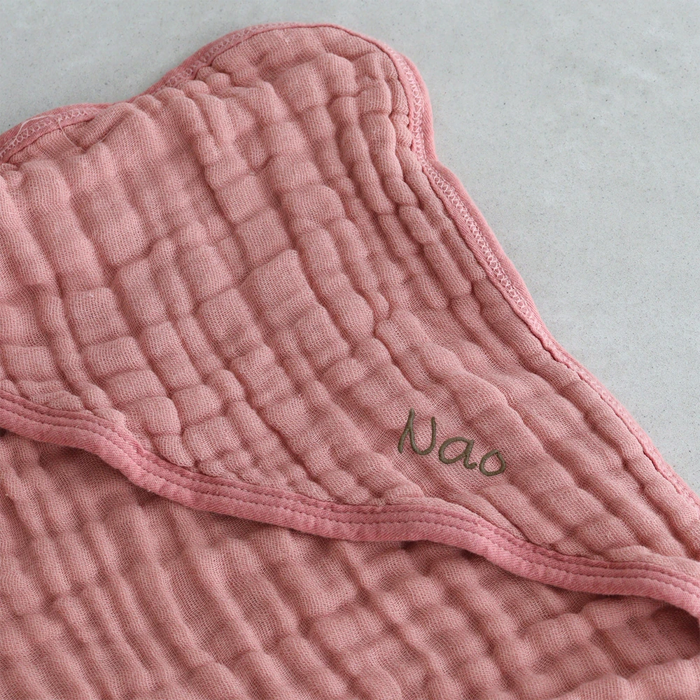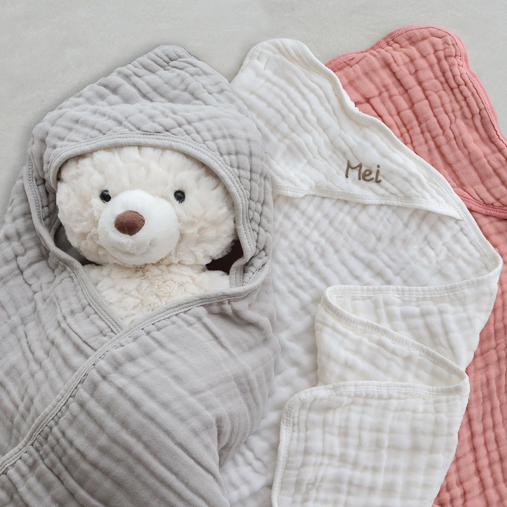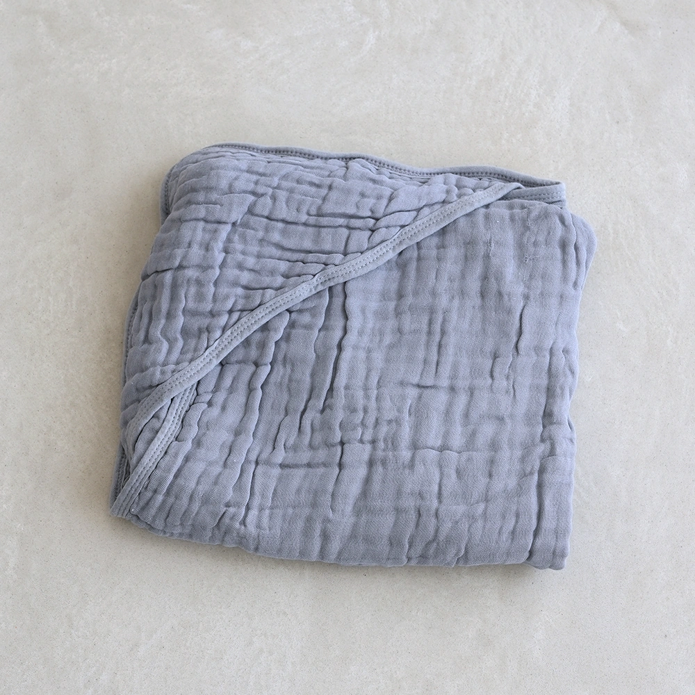 6重ガーゼでふんわりやわらかなガーゼフード付きバスタオル。