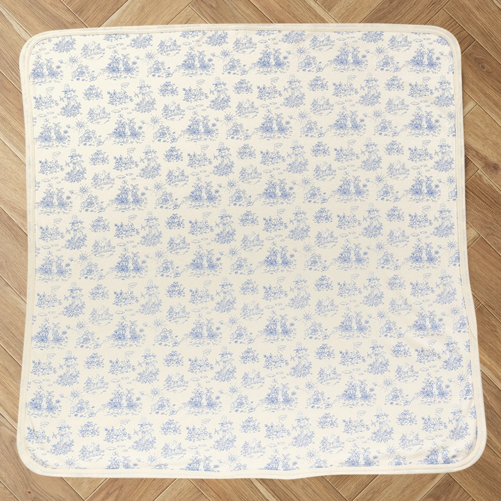 SIZE:スタイ:W210×H200mm ブランケット:W740×H740mm 素材:綿100% 表/ネイビープリントスムース 裏/スムース無地 生産国:日本 |