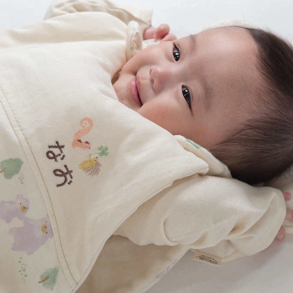 | SPEC | サイズ:60-90cm 素材:オーガニックコットン100% 表 ダブルガーゼ(プリント柄) 裏 ダブルガーゼ(無地) 中綿 ポリエステル100% 生産国:日本 |