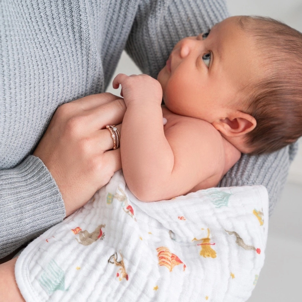 お口拭きや沐浴布、お出かけ時のタオルなど、シーンを選ばず使える便利な一枚。