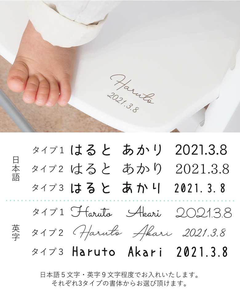 末永く使い続けたい、お名前が入った特別なベビーチェアです。