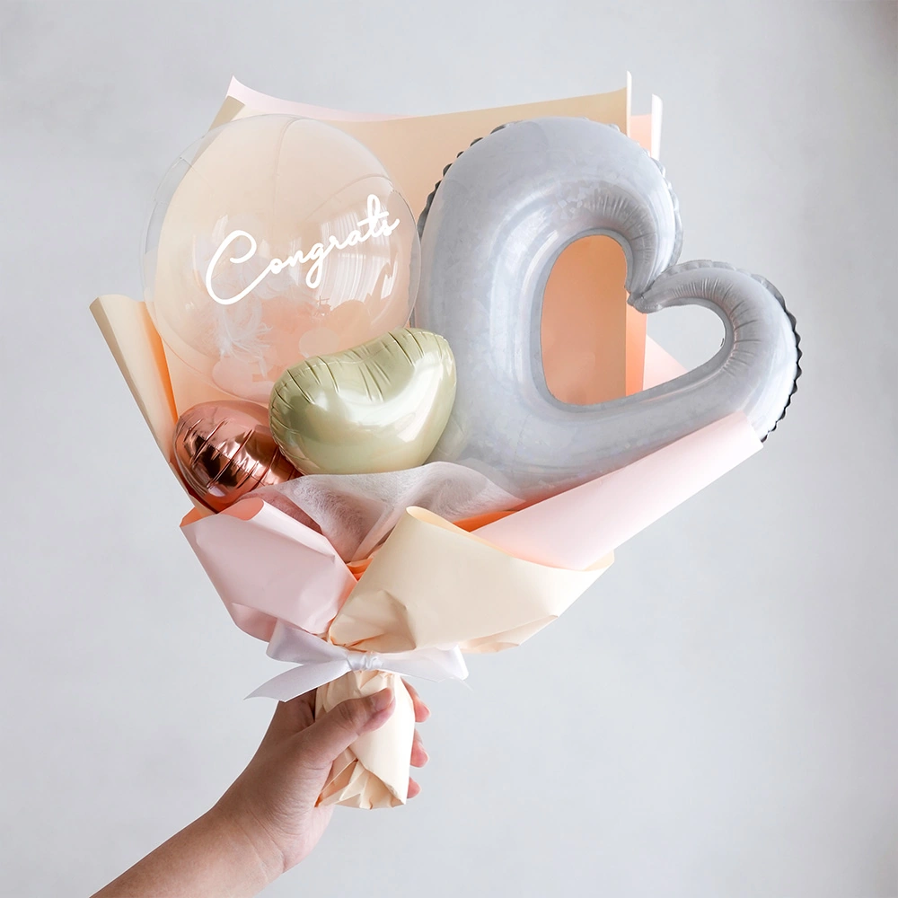 ふんわり軽やかなハートのバルーンを花束のように束ねたバルーンブーケ。