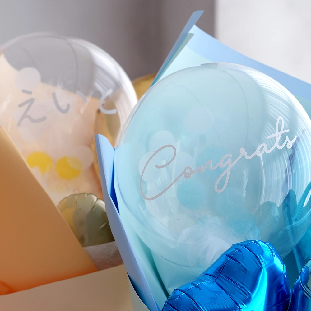クリアバルーンにはお名前やメッセージ、イラストのシールを入れることができます。