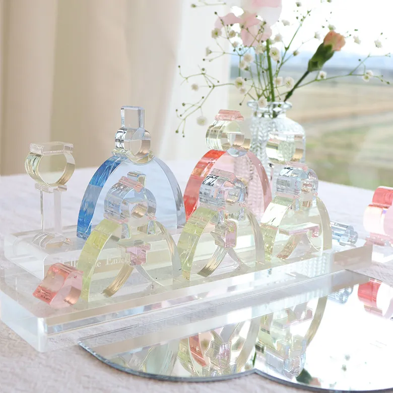 アクリル素材の積み木は、製品の加工時、遊んでいると少しづつこのような傷が入る場合があります。