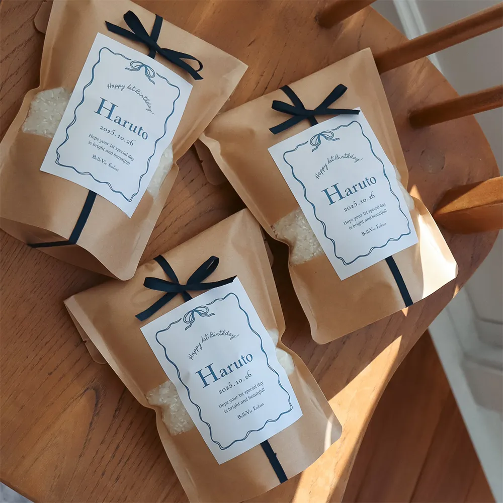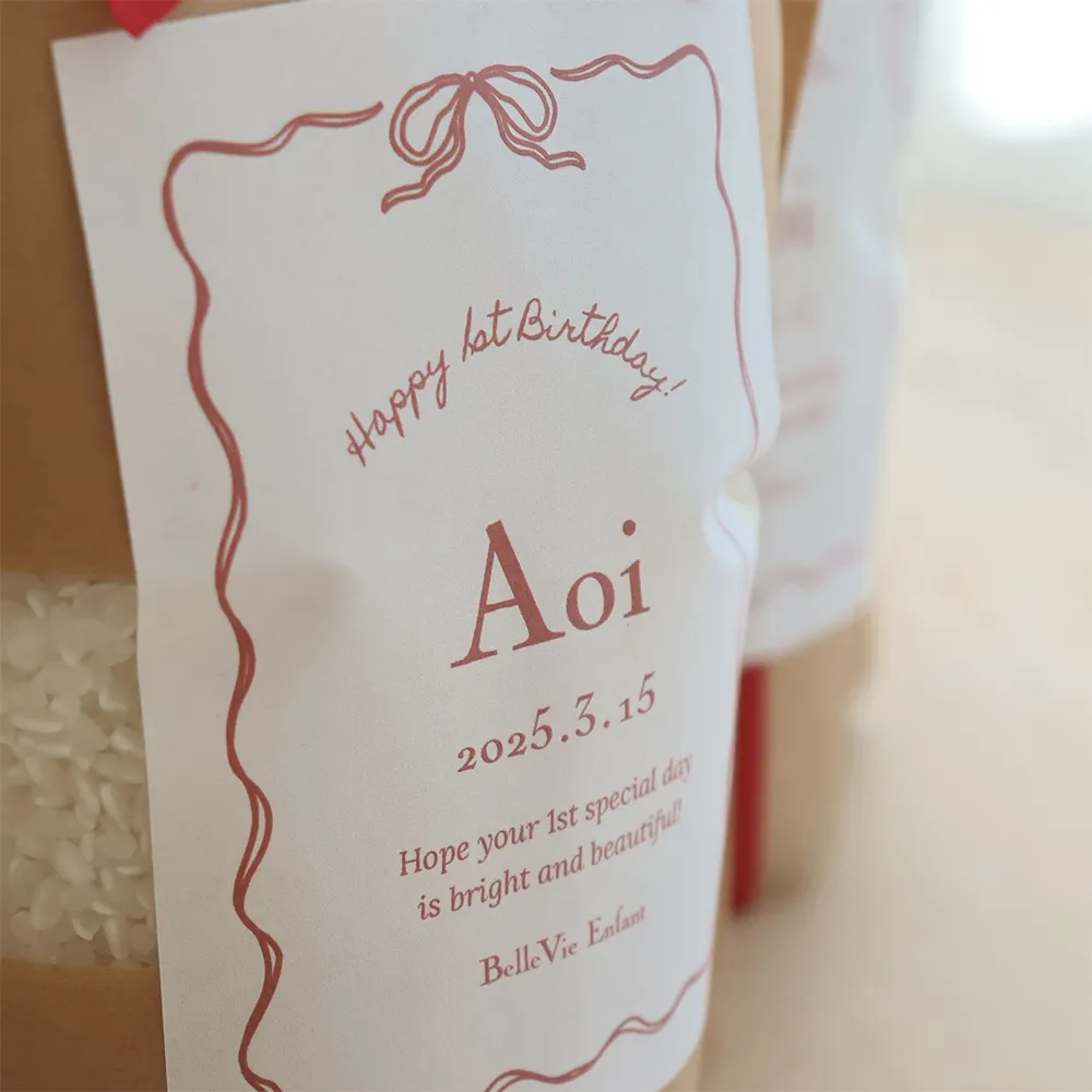 一升米に、お名前や生年月日を入れてぐっとおしゃれな印象に♪