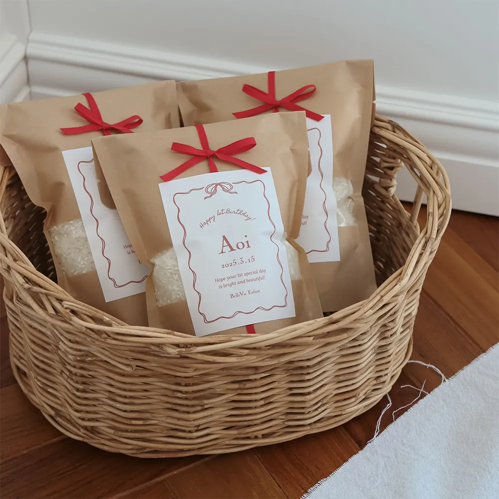 一升米シール/名入れについて 例)Kaori 例)みれい 例)Ayaka/2020.4.25 例)悠斗/7.31 ・お名前は、ひらがな・漢字(6文字以内)・アルファベット(10文字以内)、 生年月日も必要な場合は、合わせてご記入くださいませ。 ・アルファベットでお入れする場合、頭文字は大文字それ以降を小文字でお入れします。 ※生年月日は西暦でお入れいたします。 和暦でご記入された場合、下記に変更させていただきますので予めご了承ください。 例)令和3年12月20日 → 2021.12.20 ※お名前をご希望されない場合は、1歳用のデザインになります。 ※製作開始から7営業日後に発送します。 お急ぎの方はご連絡くださいませ。 |