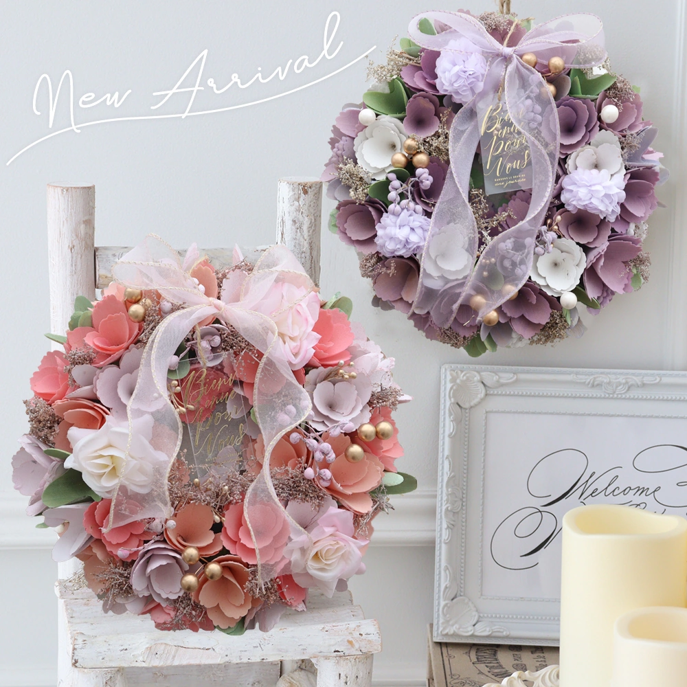人気のフラワーリースにピンク&パープルの新色が登場。