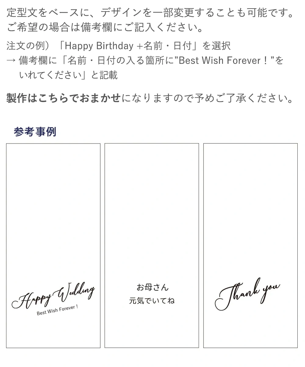 メッセージを入れればさらに気持ちが伝わる特別な贈り物に。