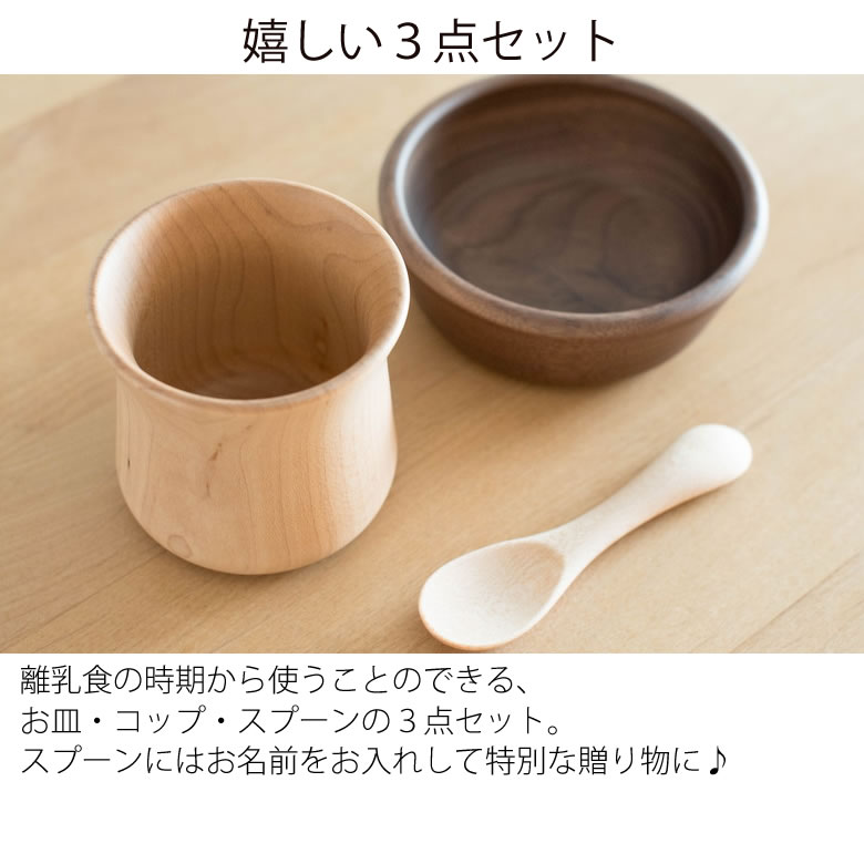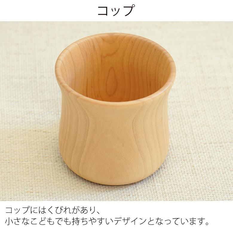 お皿:(こげ茶)ウォールナット(あか茶)チェリー コップ:メープル スプーン:メープル |
