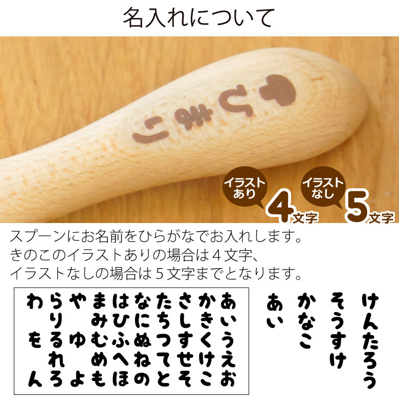 | 名入れ | ・お入れするお名前を ひらかなで イラストありは4文字まで、 イラストなしは5文字まででご指定ください。 |