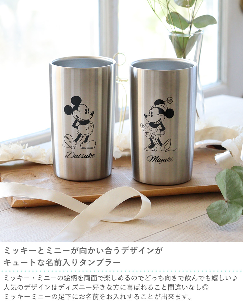 ミッキーとミニーが向かい合うデザインが キュートな名前入りペアタンブラー ディズニー
