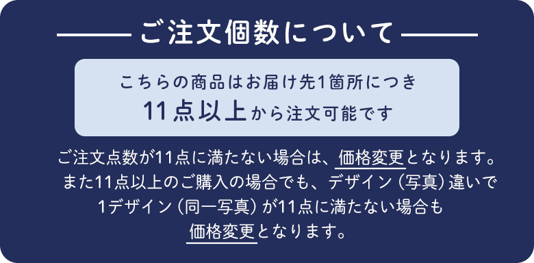製作開始から4~5営業日程度で出荷。 ※1回のご注文で50点以上ご購入の場合は7営業日~10営業日で出荷します。 |