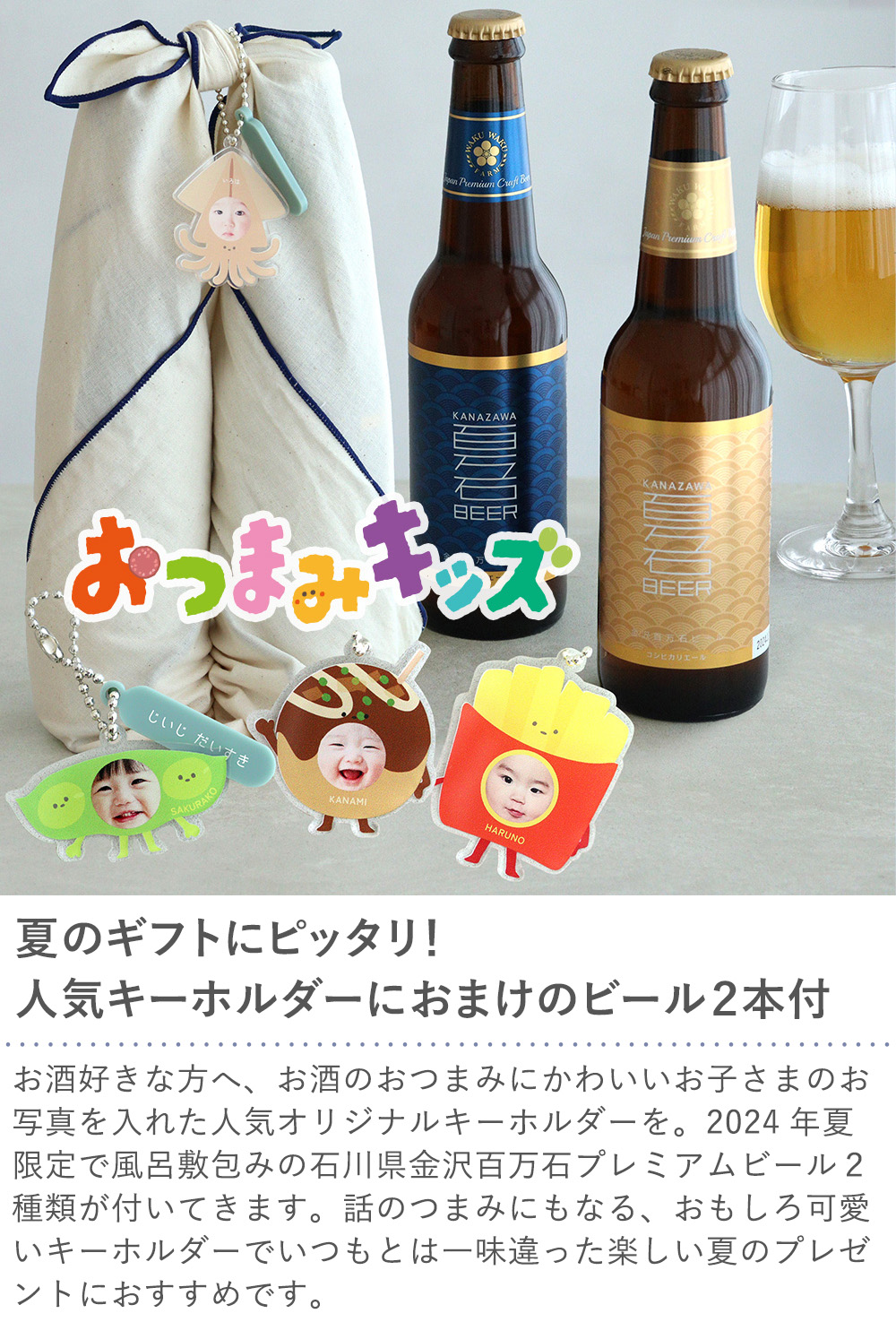 ■【名入れ】おつまみキッズ&ペット 顔はめキーホルダー(今だけ!金沢百万石ビール2本付)