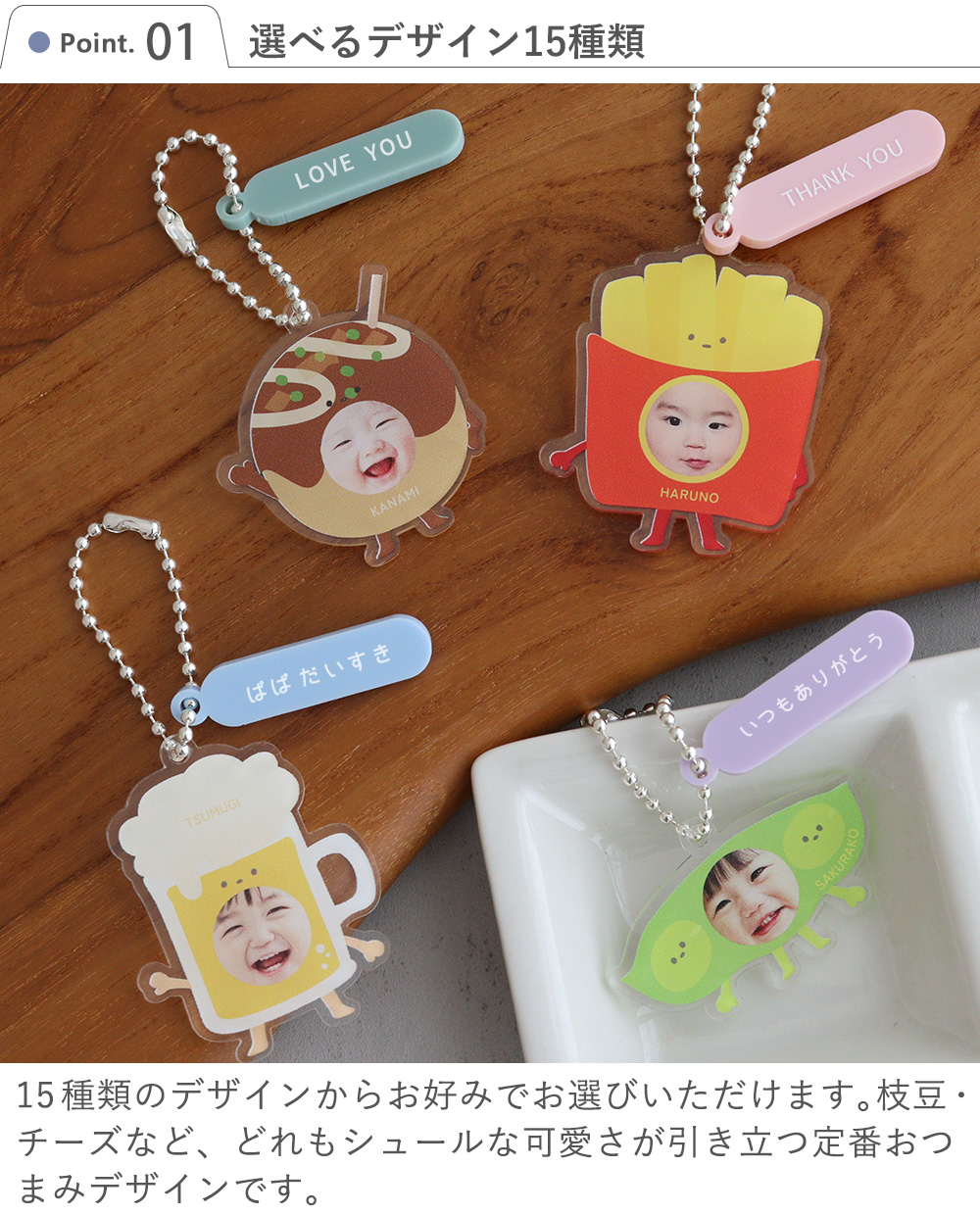 【名入れ】おつまみキッズ&ペット 顔はめキーホルダー(今だけ!金沢百万石ビール2本付)
