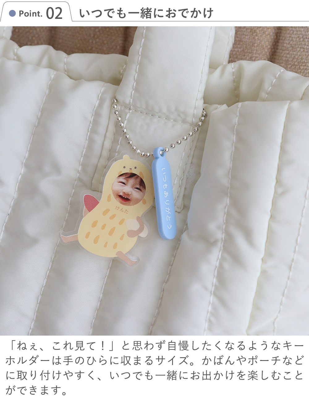 かばんやポーチなどに取り付けやすく、いつでも一緒にお出かけを楽しむことができます。