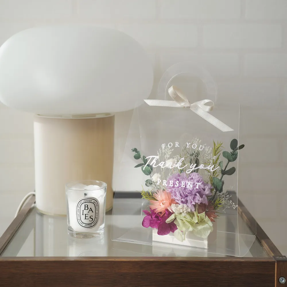 9種のアレンジからお好きなお花をクリアトートに入れてお届けします。