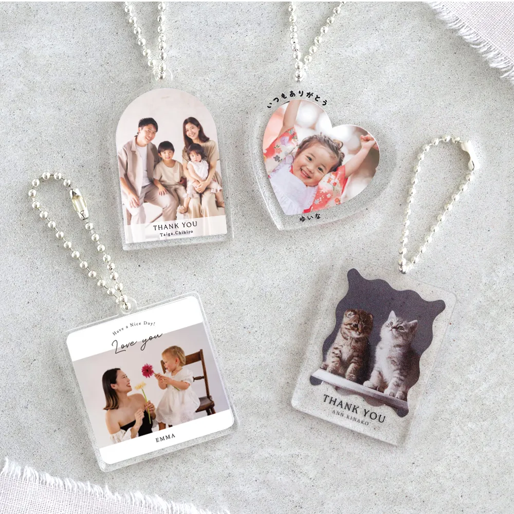 お子様やお孫さん、ペットや家族写真など、大切な方のお写真でつくるキーホルダーは喜ばれること間違いなし◎