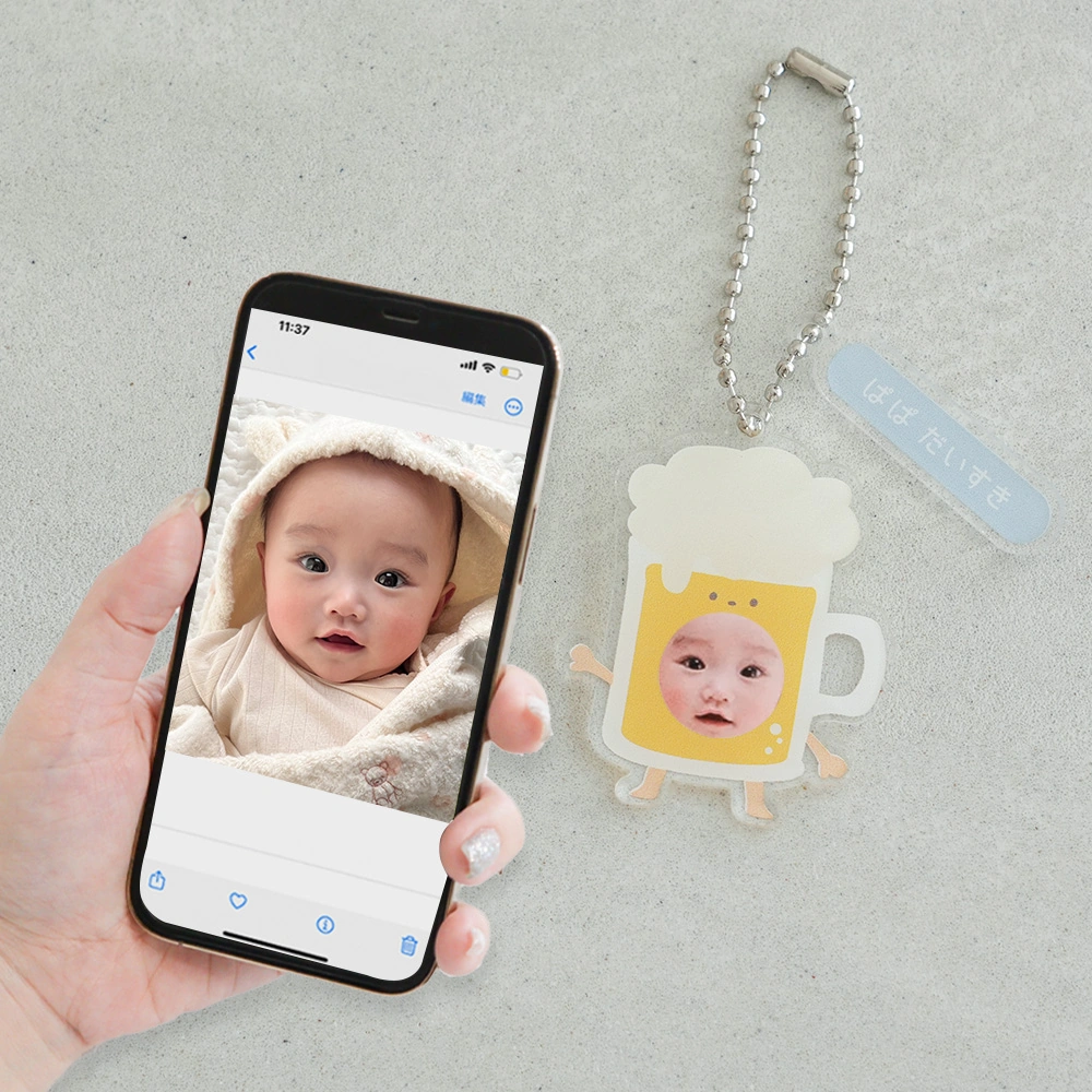 ■【名入れ】おつまみキッズ&ペット 顔はめキーホルダー+カラーステンレスタンブラーセット