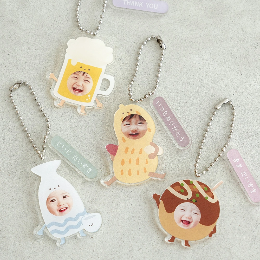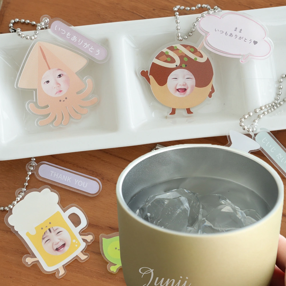 【名入れ】おつまみキッズ&ペット 顔はめキーホルダー+カラーステンレスタンブラーセット