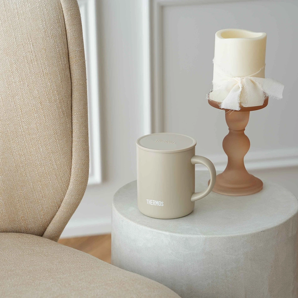 ハンドル付きで持ちやすいサーモスのマグカップ。