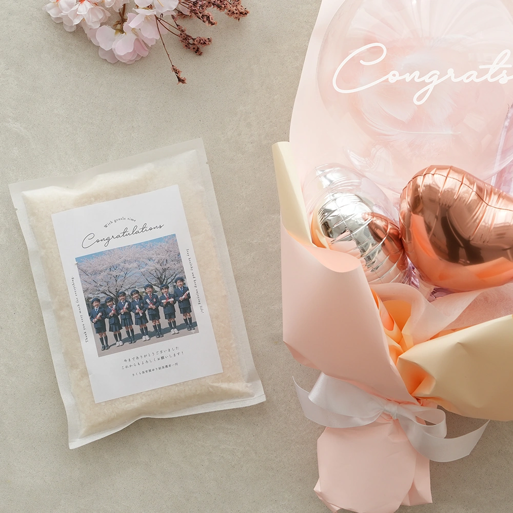 「おめでとう」を一人ひとりに 卒業の節目に贈る写真入りお米ギフト