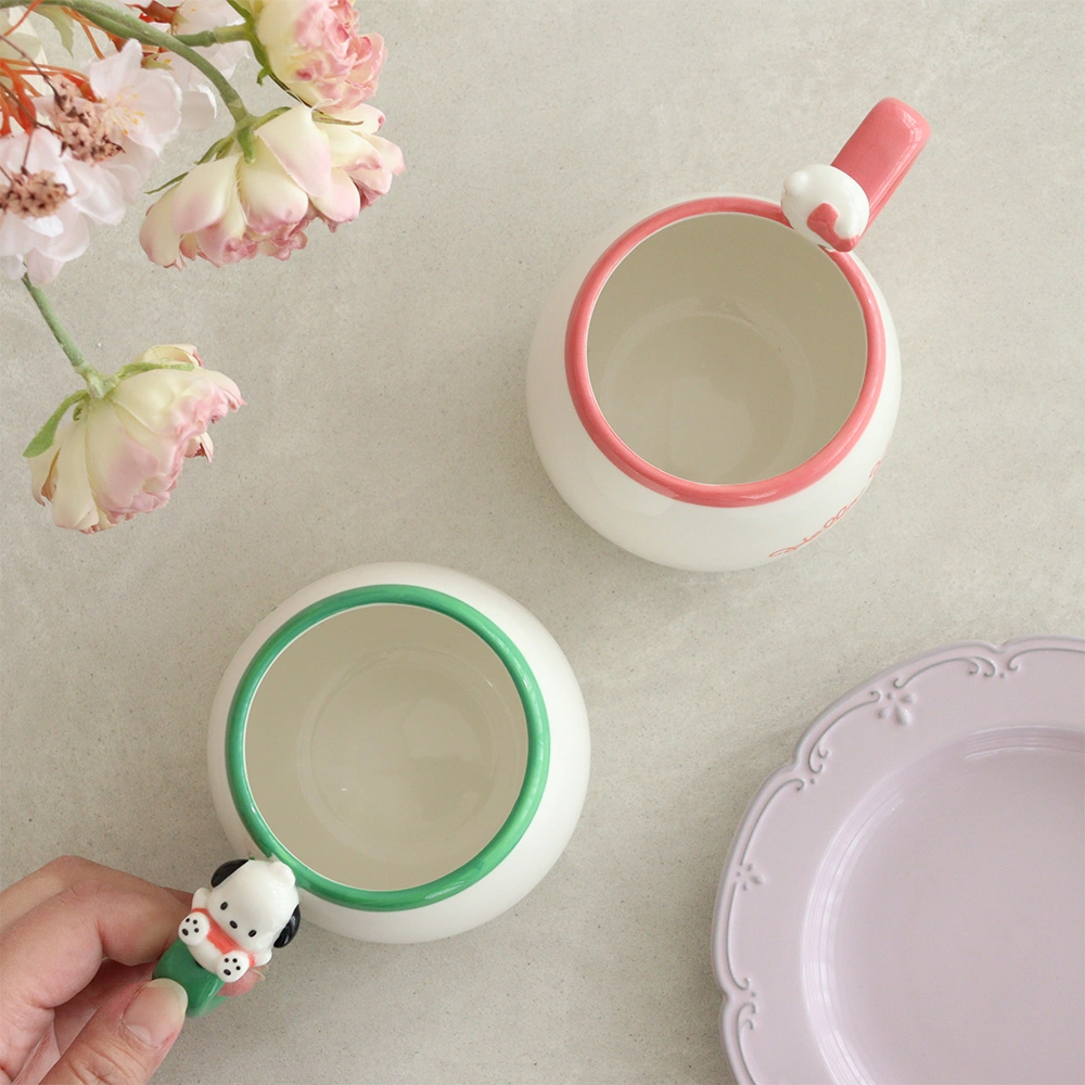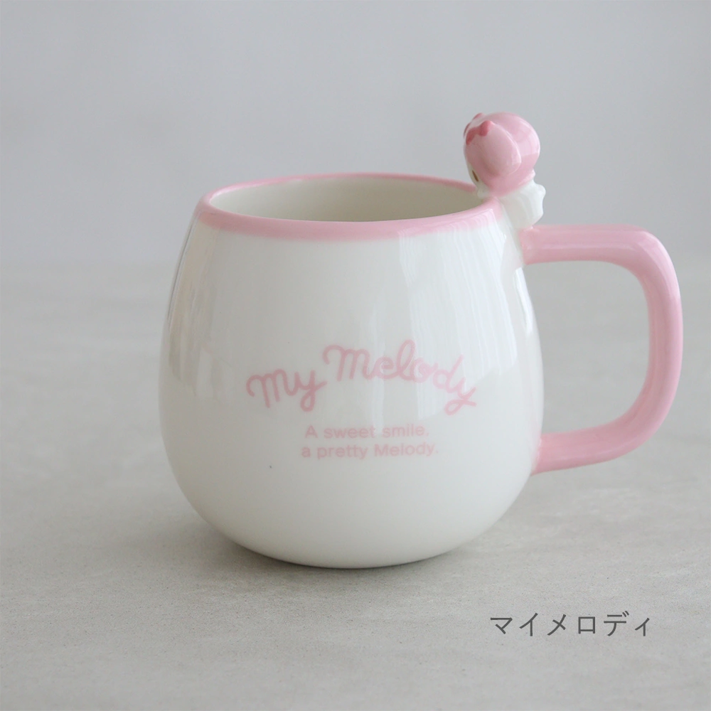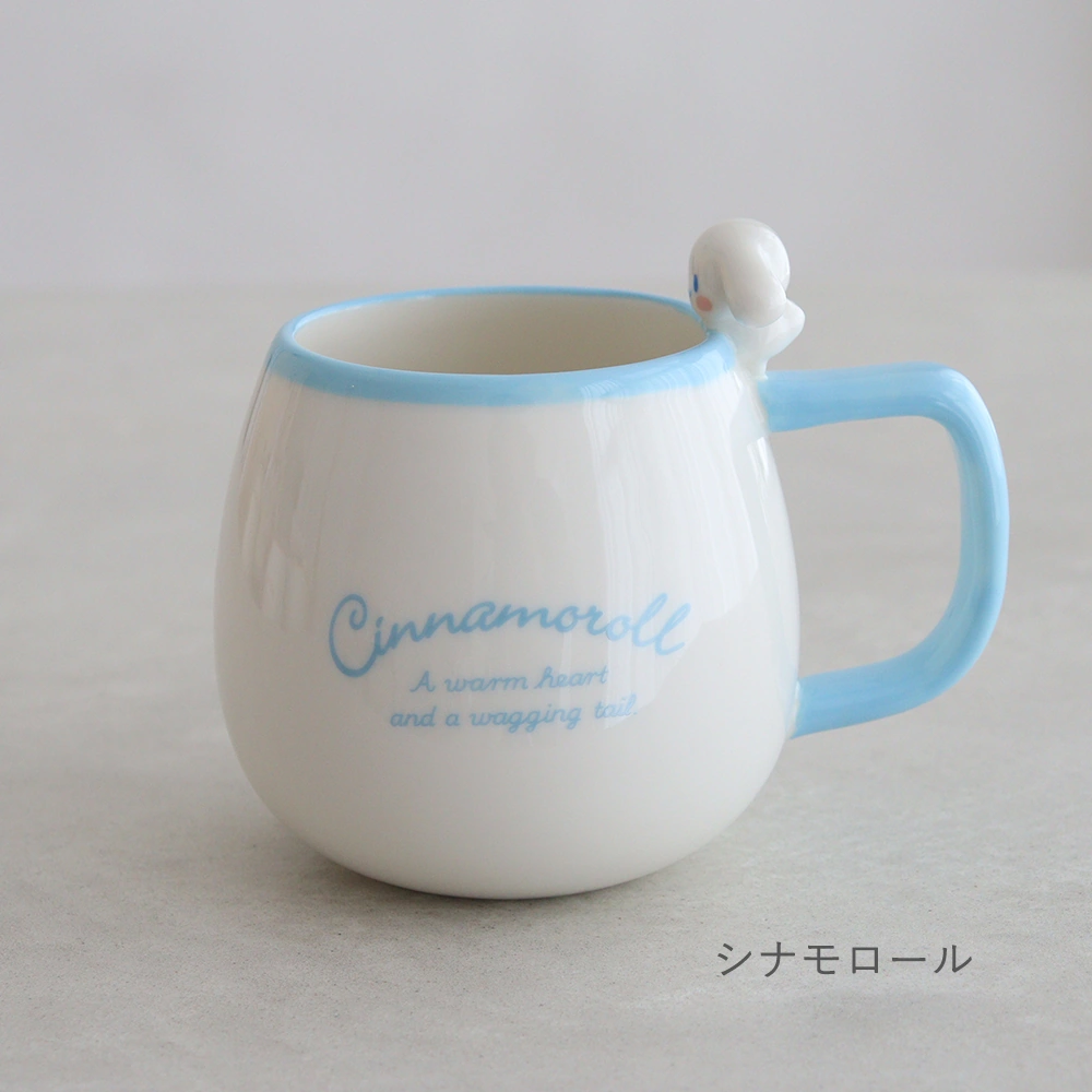 取っ手にちょこんと乗ったキャラクターが愛らしいサンリオのマグカップ。
