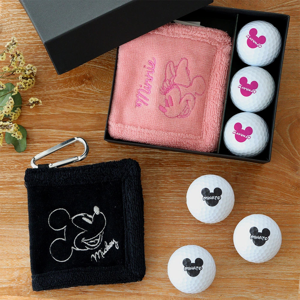 ボールもタオルも名入れができる ミッキーとミニーのゴルフギフト