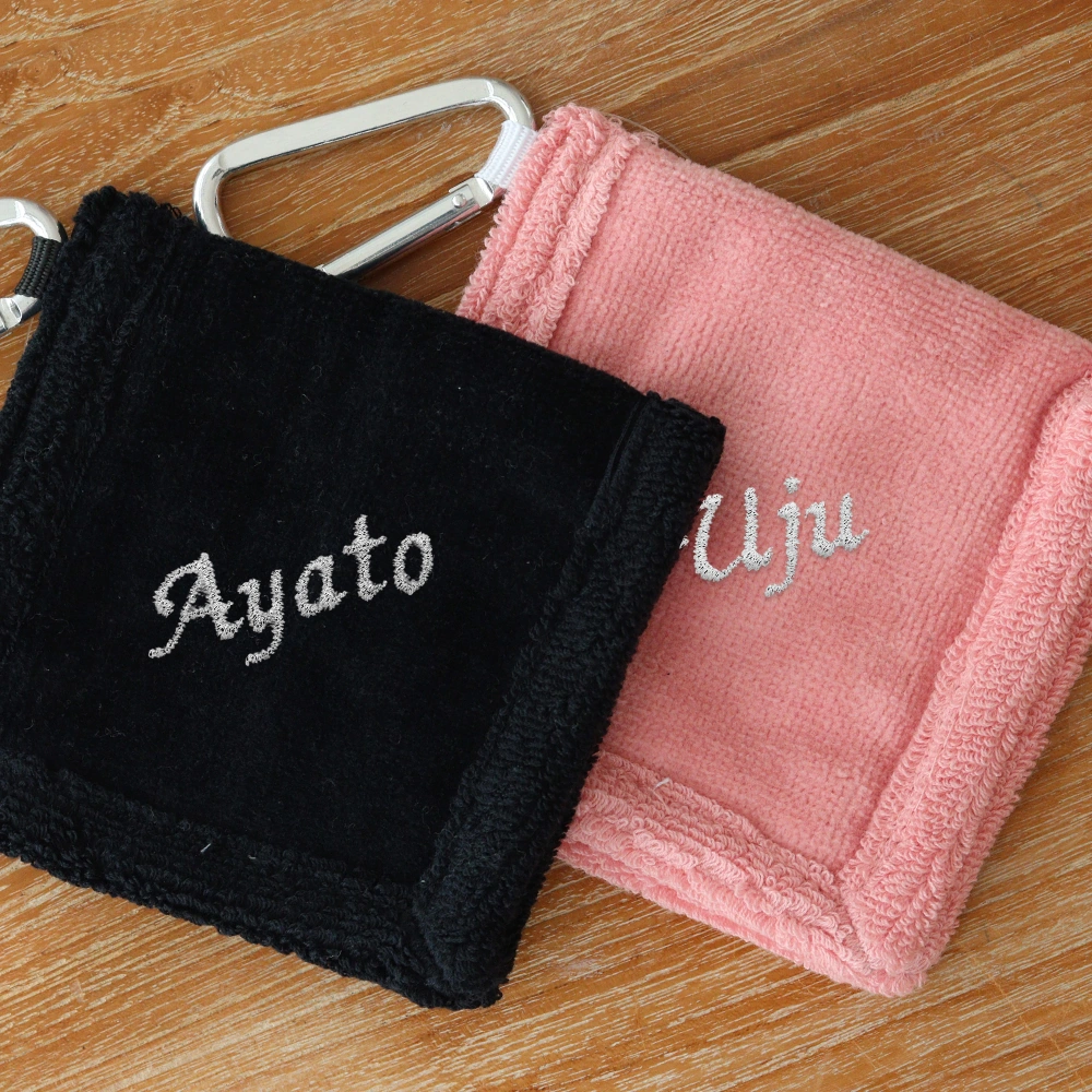 タオルはボールがすっぽり収まる袋型で、オプションで名入れ刺繍も可能。