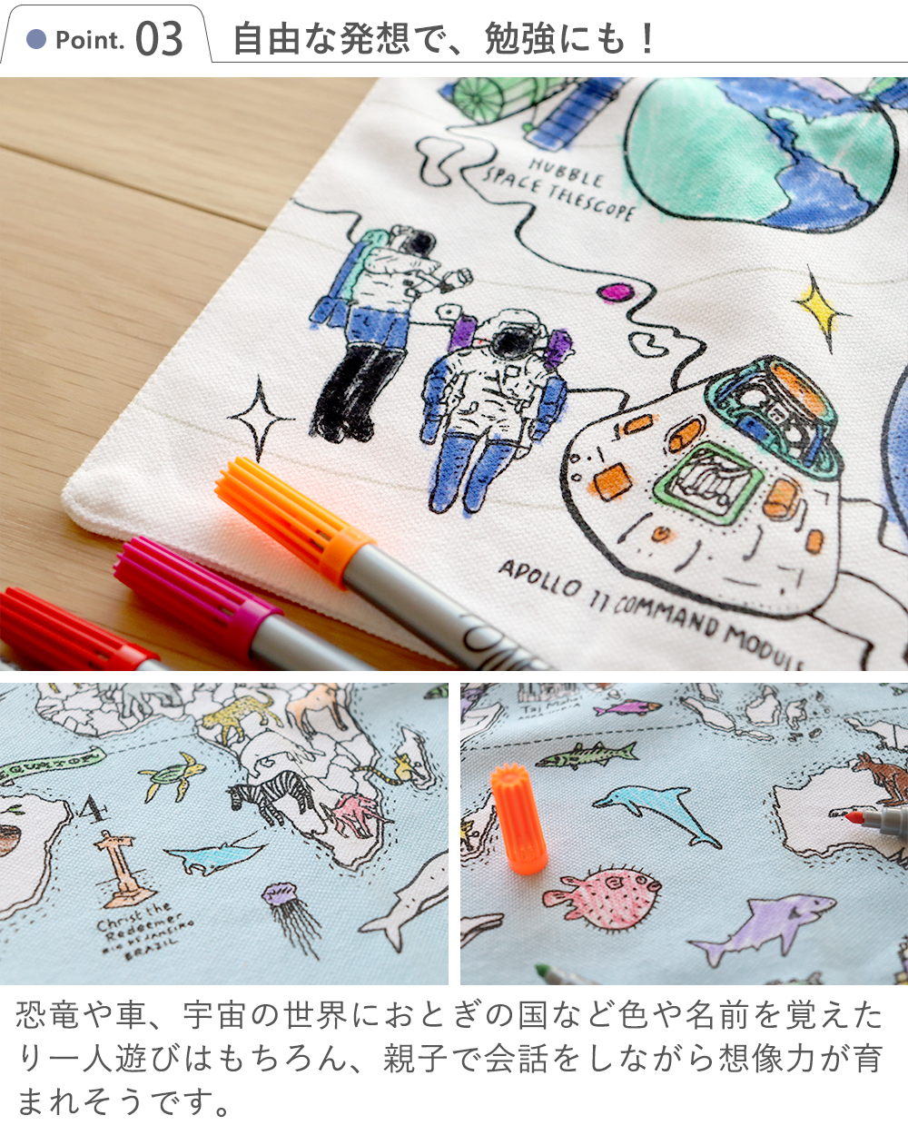 自由に何度も塗ったり描いたりすることで、お子様独自のスタイルや想像力が広がるアイテムです。