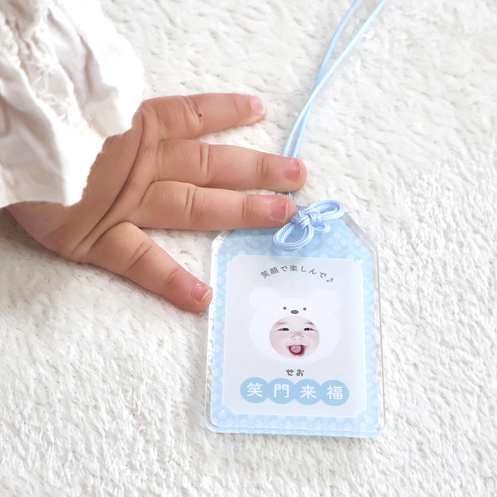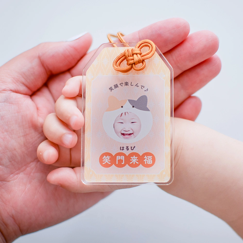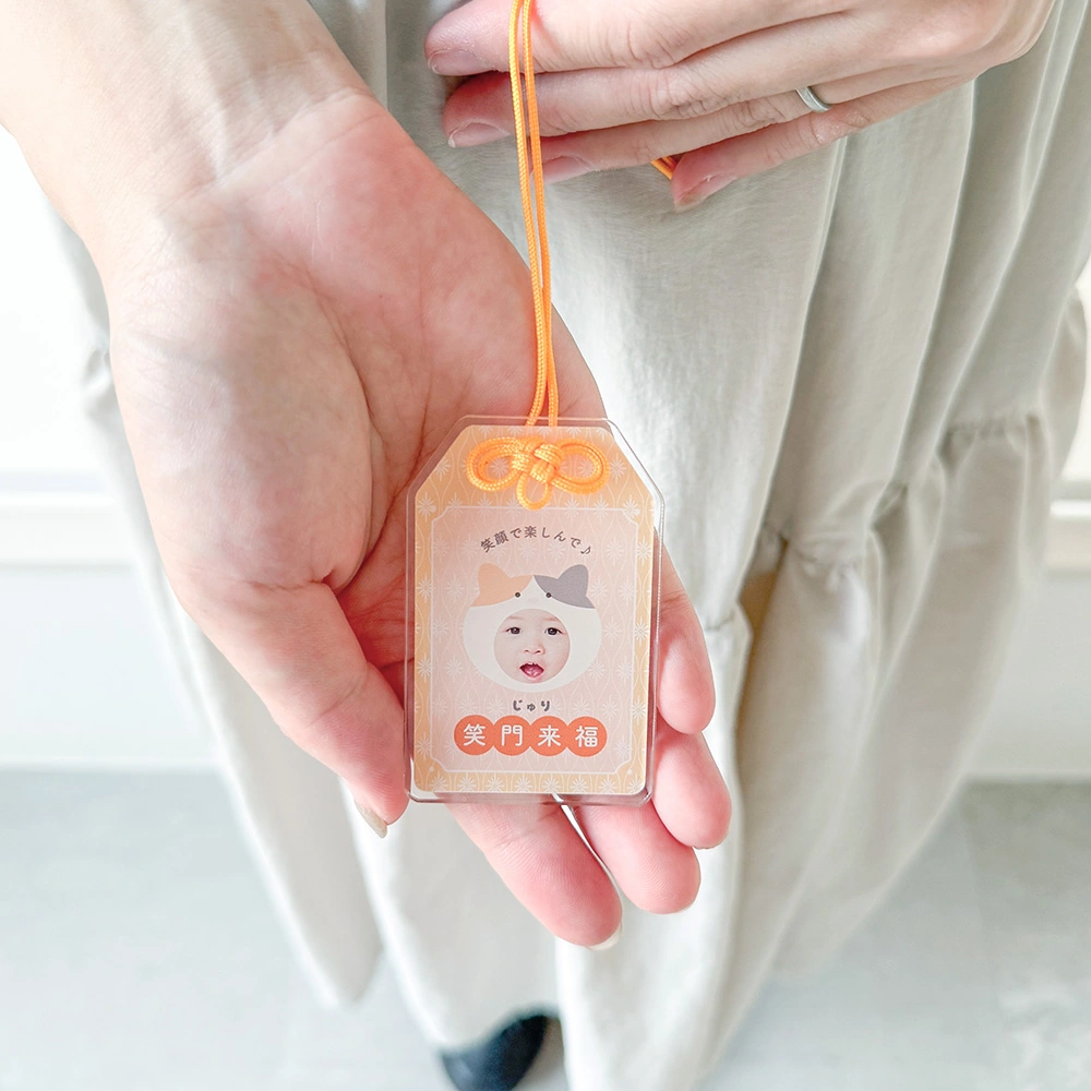 いつでも身につけたい世界に一つだけの顔写真入りのお守りキーホルダー。