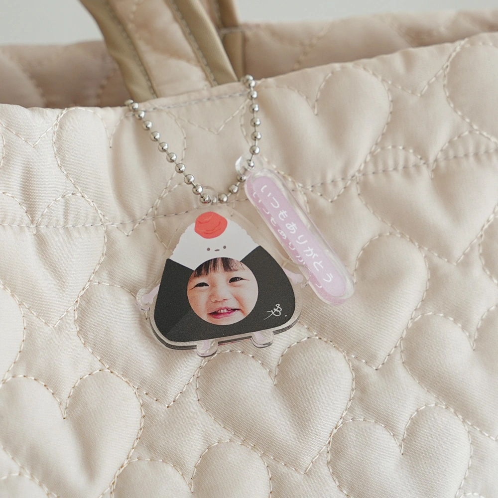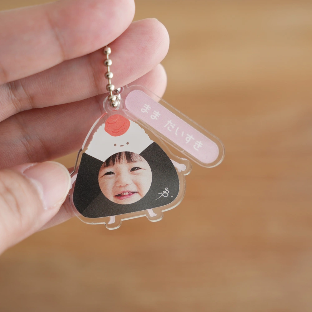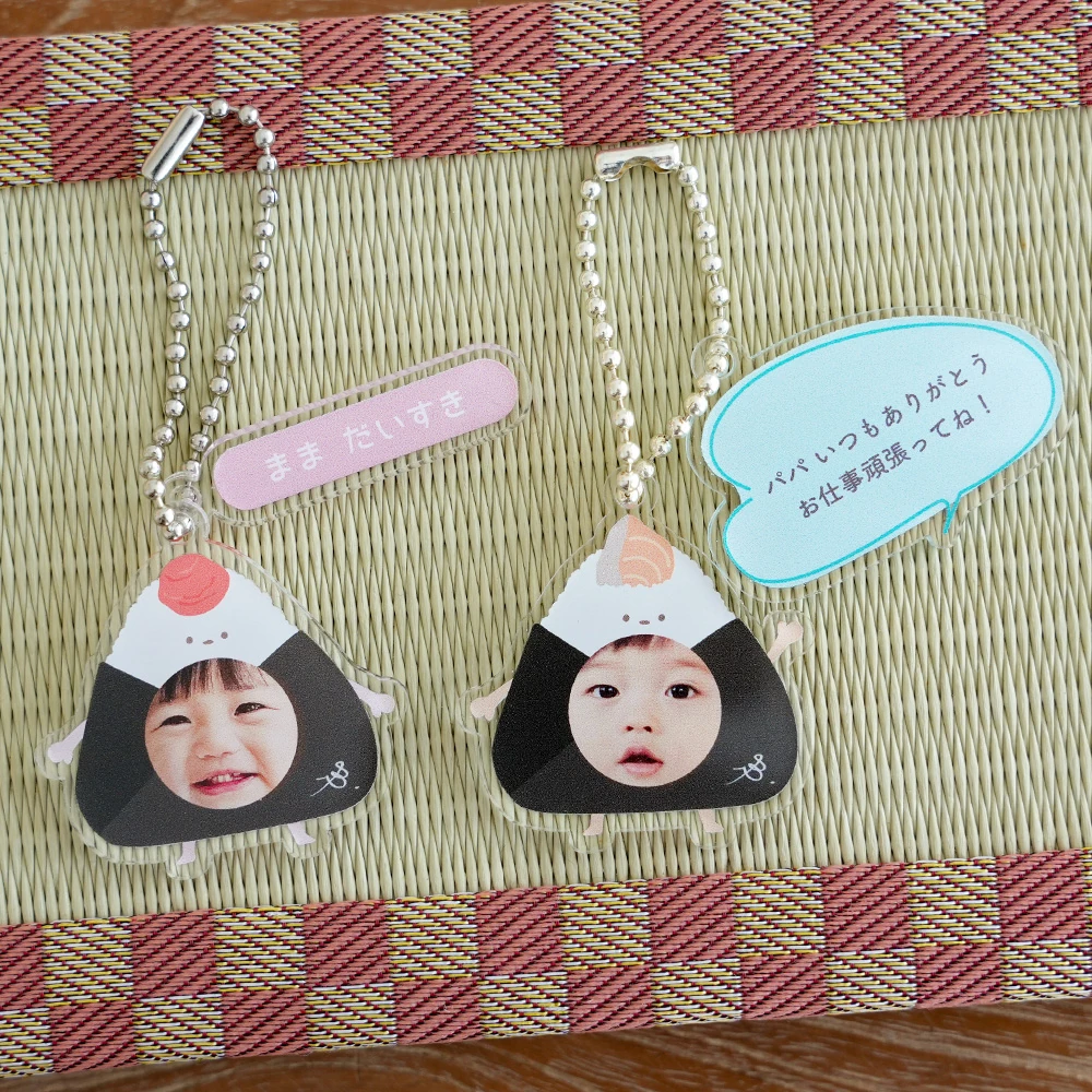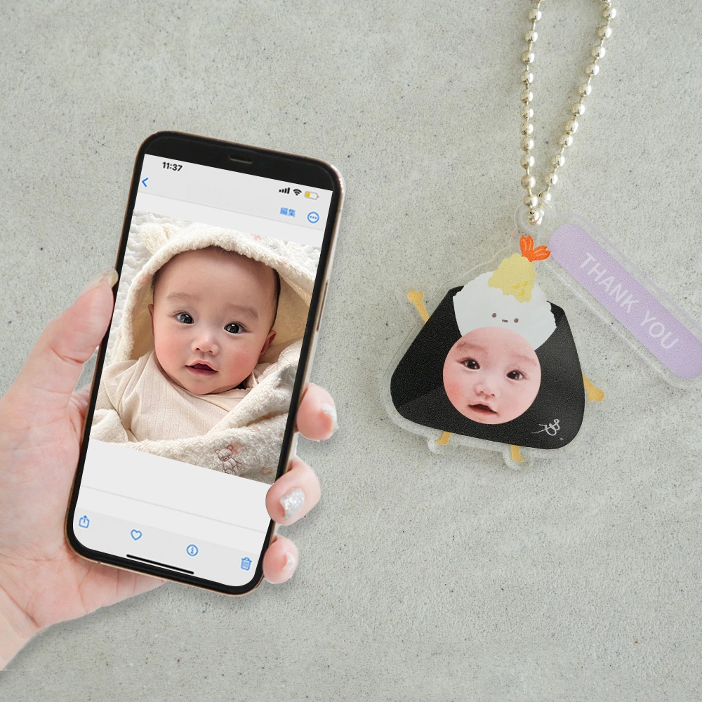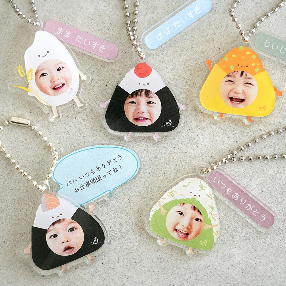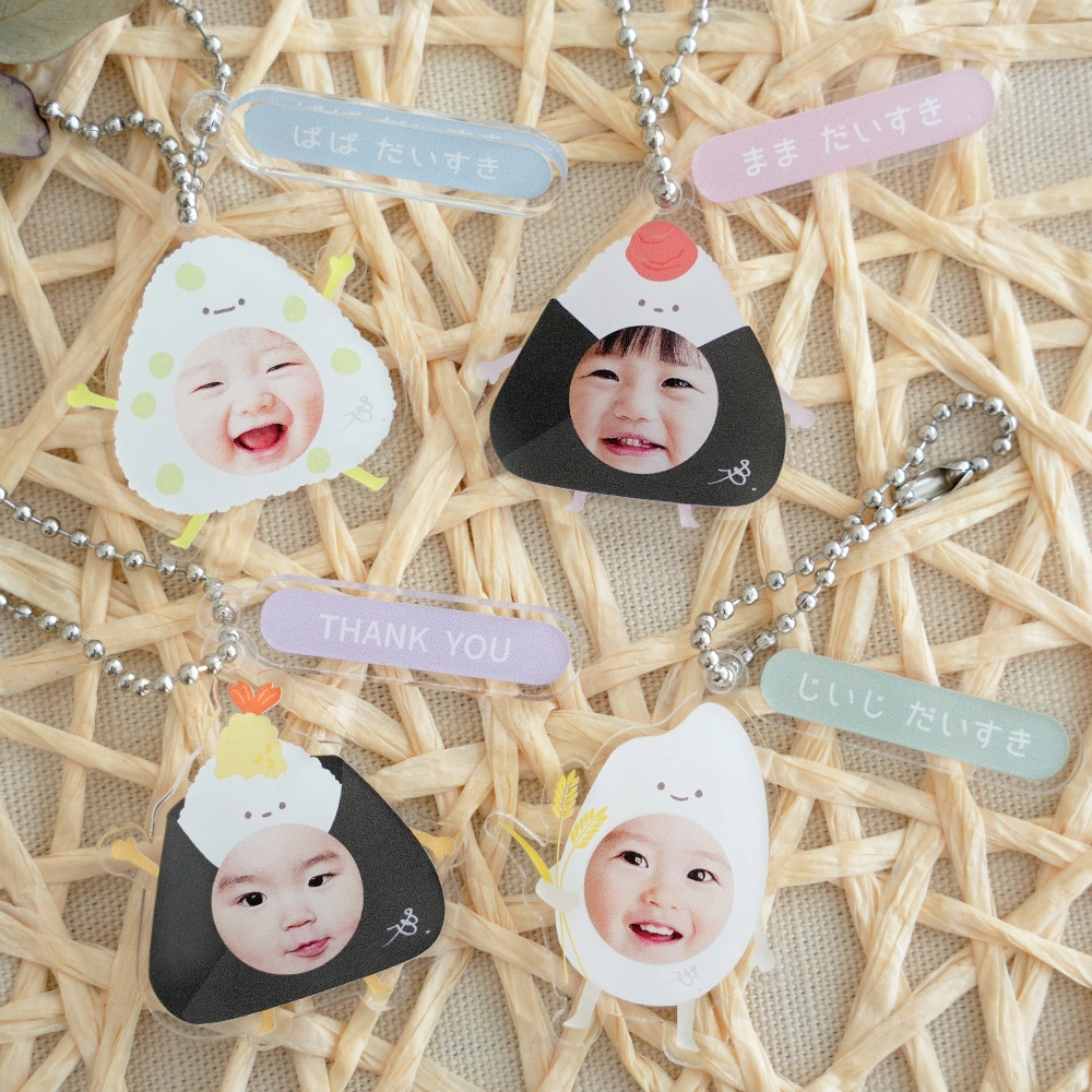お子さまの顔写真で作る、かわいいお顔入りおにぎりアクリルキーホルダー。