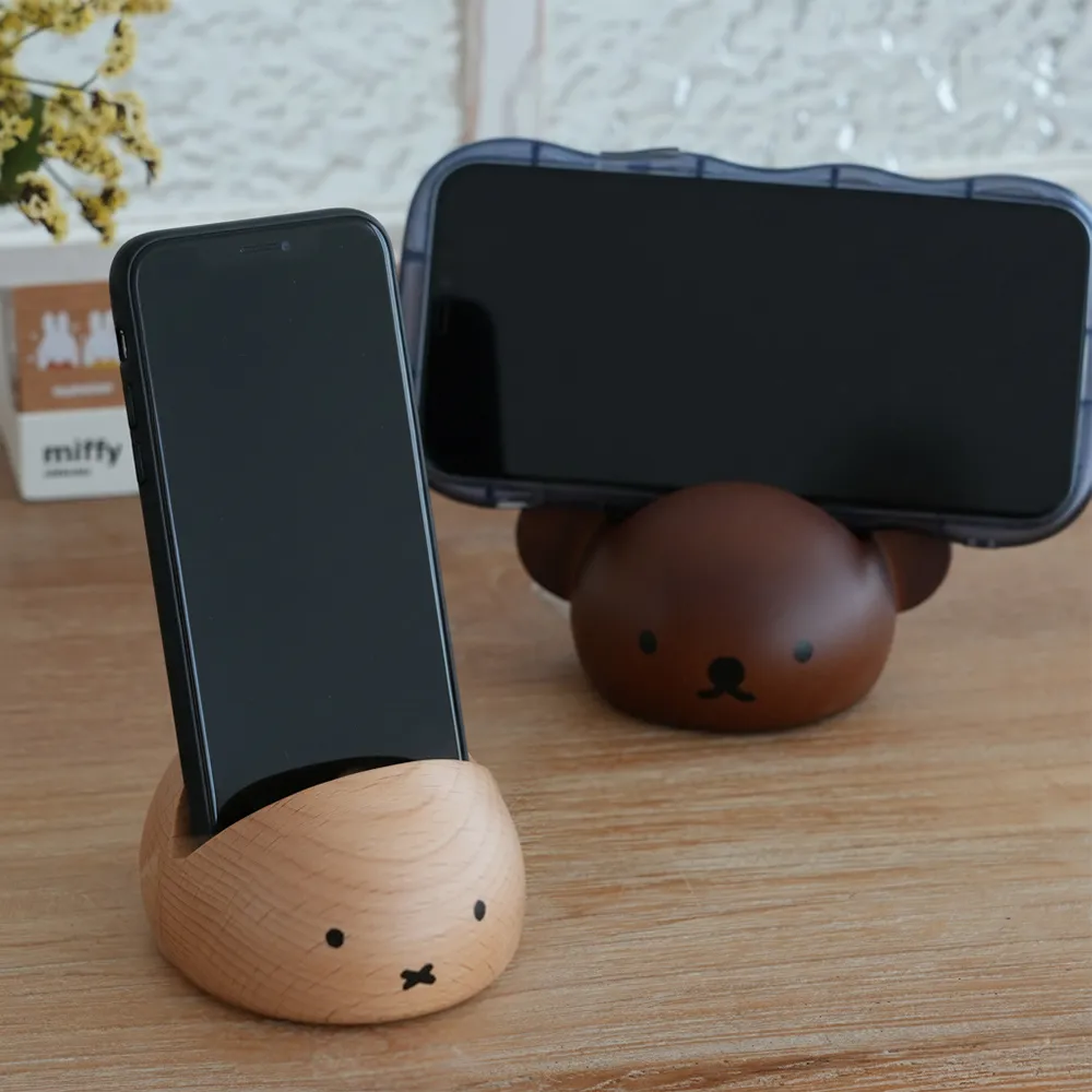 ナチュラルな雰囲気のブナ材を贅沢に使用したミッフィーとボリスの木製スマホスタンド。