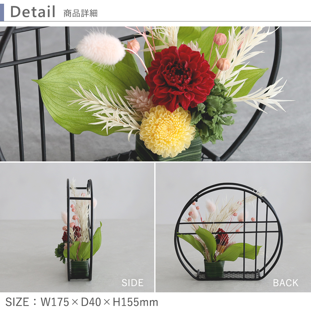 「ありがとう」のカードを添えて贈りたい和風プリザ。