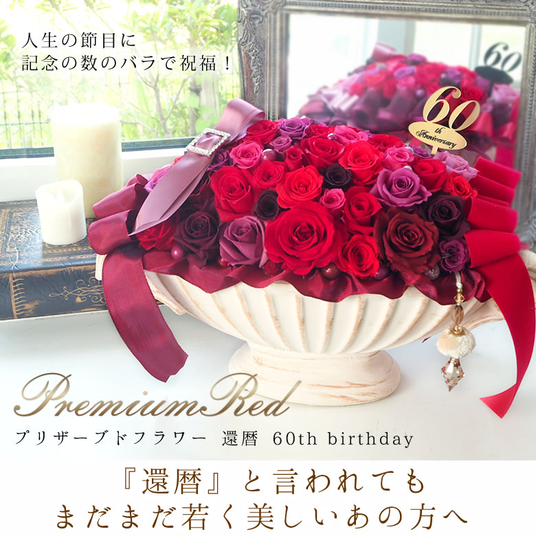 プリザーブドフラワー 60th birthday 還暦 (60歳誕生日)プレミアムレッド