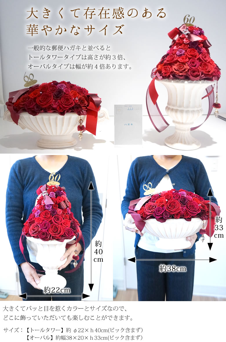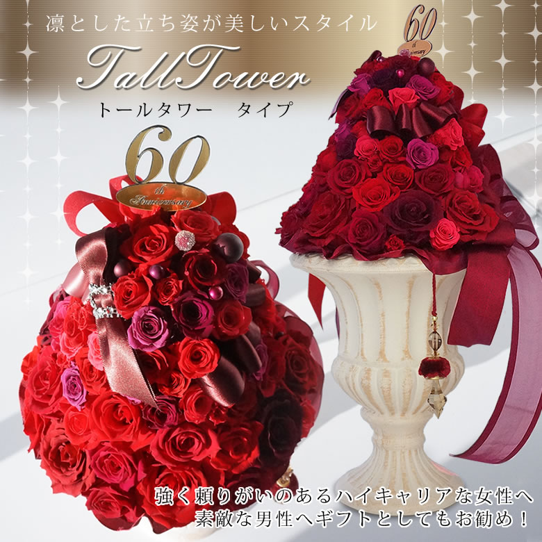 ■プリザーブドフラワー 60th birthday 還暦 (60歳誕生日)プレミアムレッド