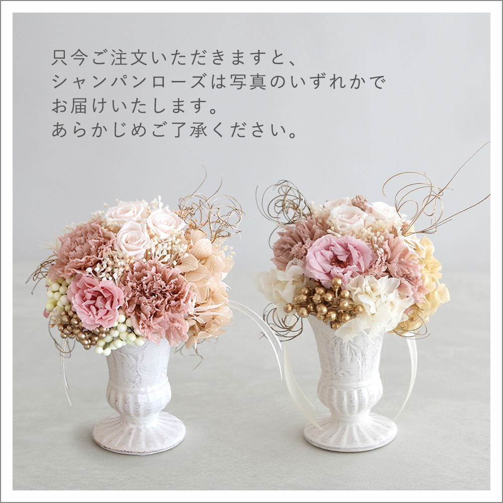 優しいフォルムのフラワーベースに、たっぷりのプリザーブドフラワー達。