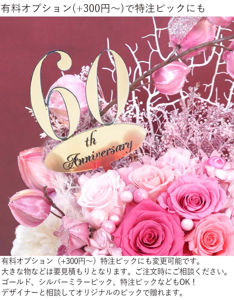| その他 | ・ポットが変更になる場合がございます。お打ち合わせ時にお知らせします。 ・土・日・祝日の発送業務はお休みです。 ・全ての商品と同梱可能です。 ・製作には、時間がかかりますので、おひにちを頂く事もございます。 余裕を持ってご注文下さい。 お誕生日や長寿祝いなどにご利用の場合 ピック印刷内容変更も承ります。 お気軽にご相談ください。 |