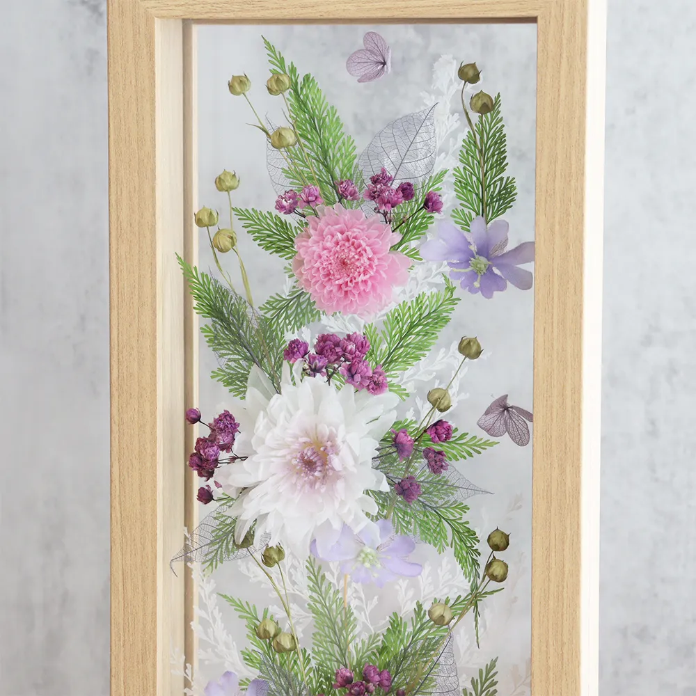 新しいスタイルのお供え花 透明なガラスのフレームは まるでこっちの世界と向うの世界をわけた窓のよう お供え花 仏花 長寿祝い お誕生祝い