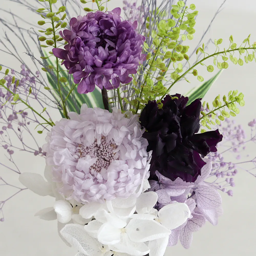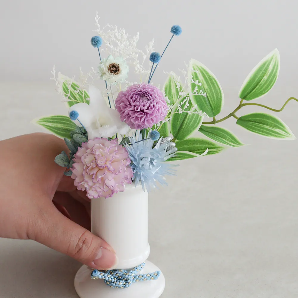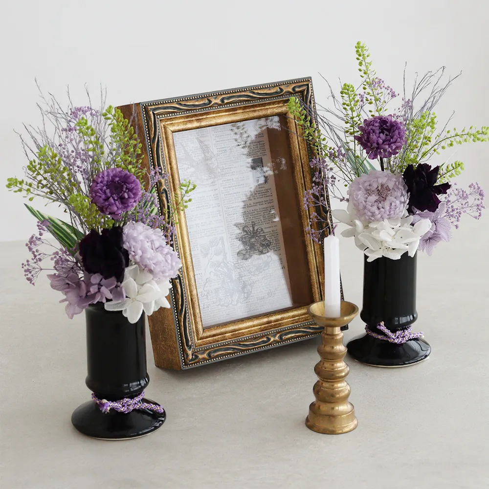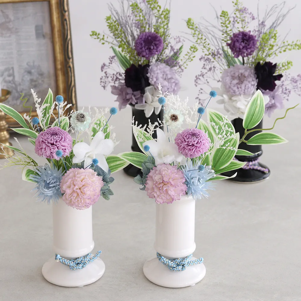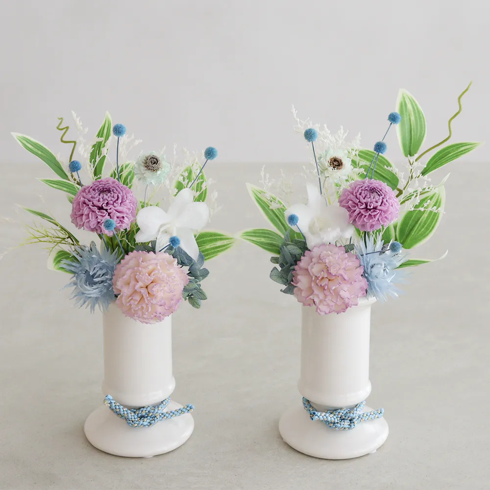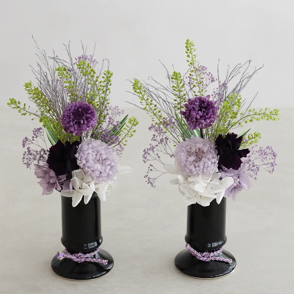 お仏壇などに左右にひとつづつ お供え出来るアレンジプリザの仏花【対セット】【花器付】