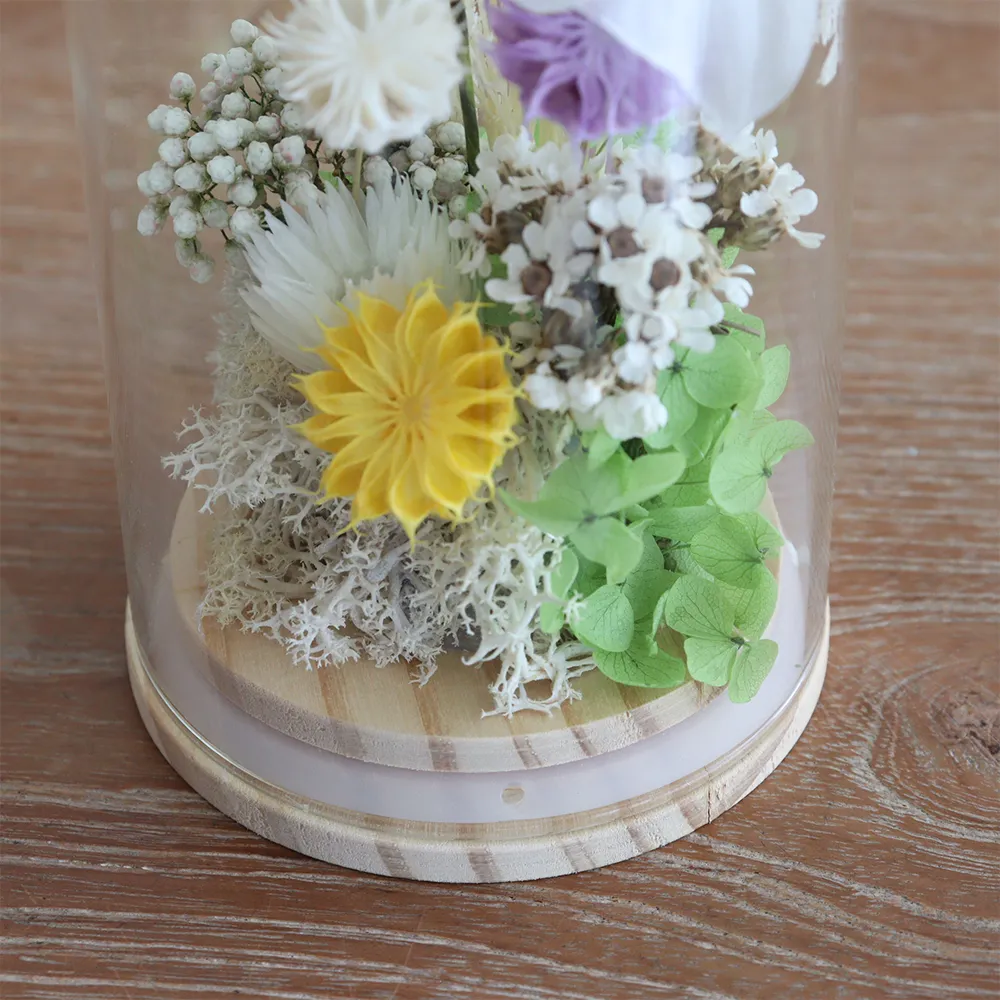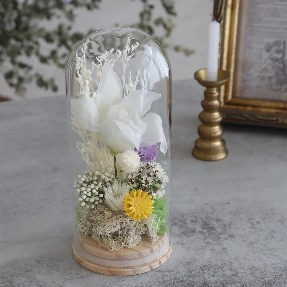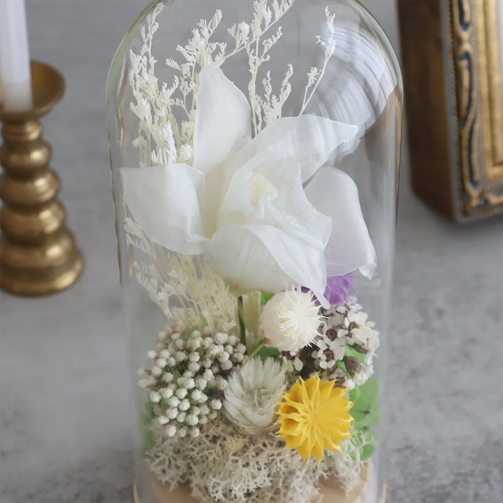 ■プリザーブドフラワー 仏花 お供え花 ガラスドーム白雫(しずく)