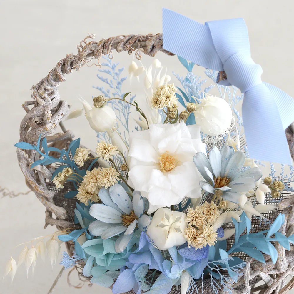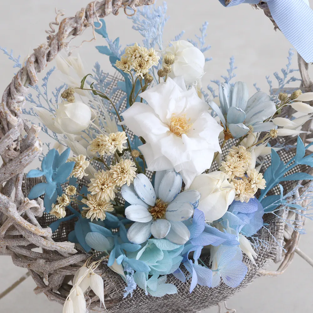 | 主な商品・材料 | 【プリザーブドフラワー】 フレンチマリアンヌ 【ドライフラワー・ソーラーフラワー】 カスピア、アナスタシア、フーセンポピー 【アートフラワー】 プチフラワー、ルスカスピック、アキレア 【その他】 リボン、バスケット ほか。 ※お花や葉っぱの種類が若干変更になる場合がございます。 |